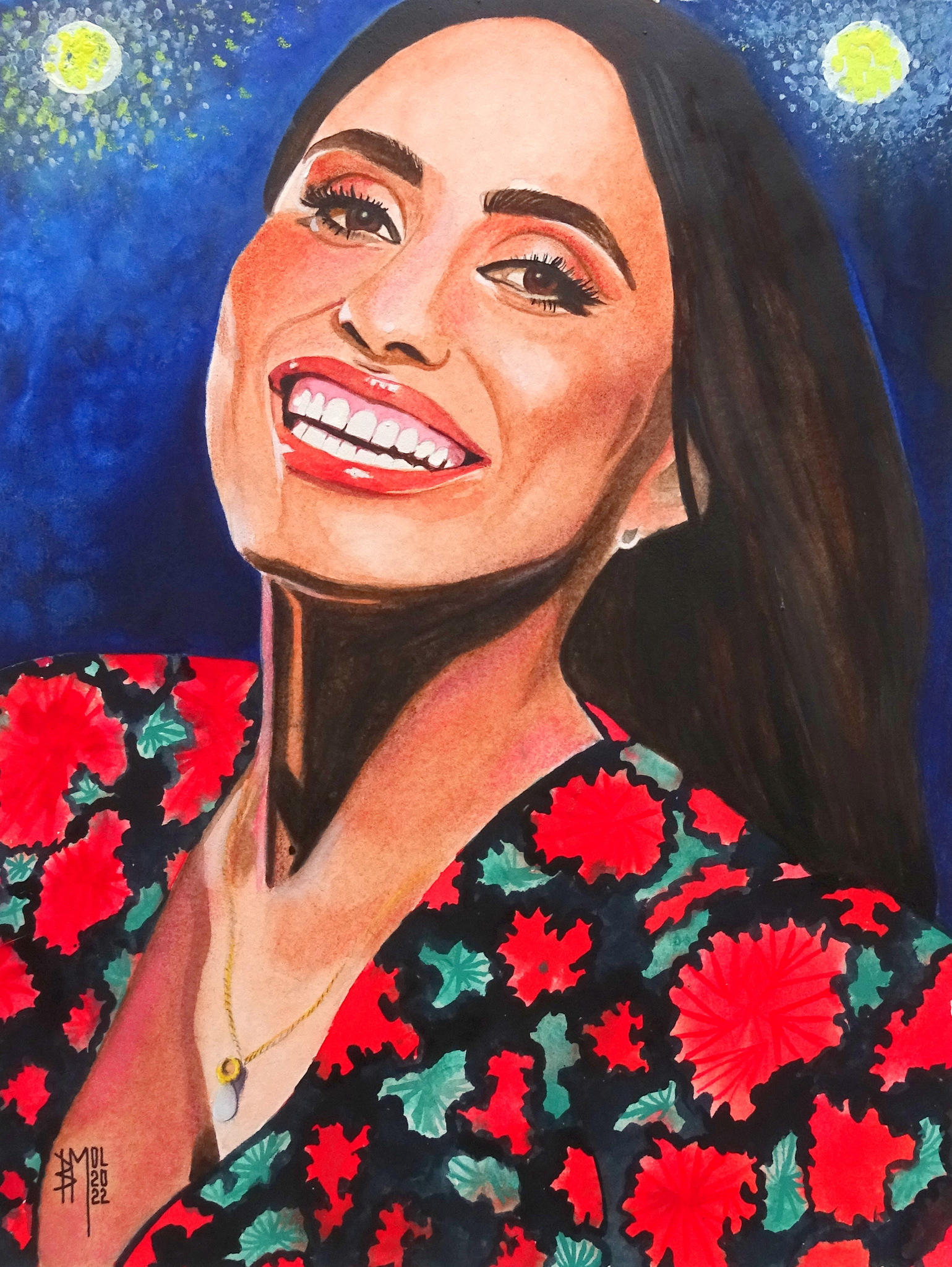 painted portrait , 40x50cm of fadosinger Maria Emília Reis , in watercolours