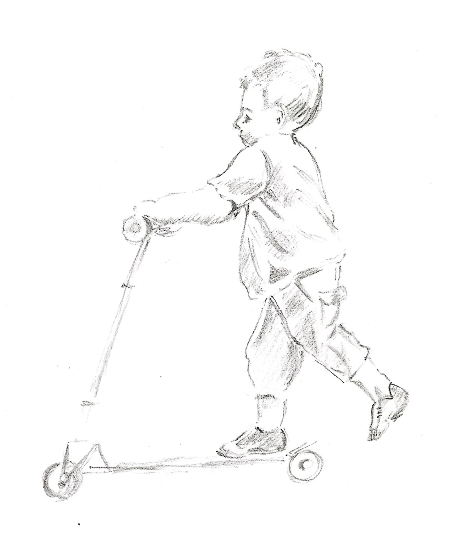 Kleine kind op een step in potlood