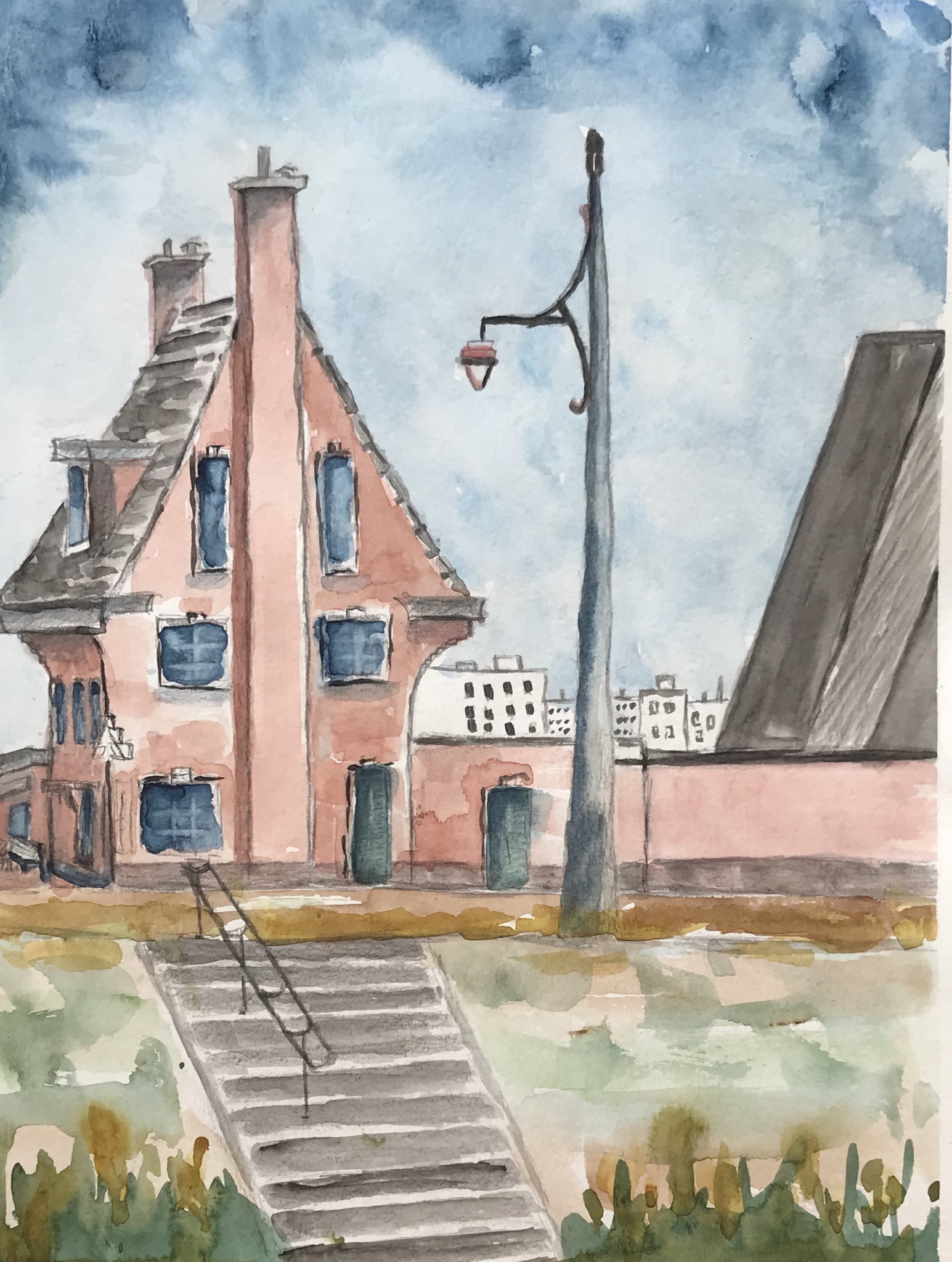 Lonely between modern block boxes Aquarel fineliner