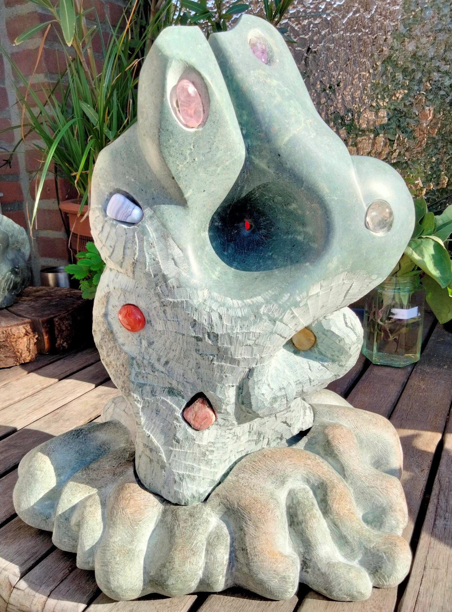 De stenen hebben een werking op de chakra`s en vertegenwoordigen een cirkel van leven in een levensboom. Ik had hem af en zag dat er geen wortels bij zaten. Het losse onderstel heb ik alsnog met wortels gemaakt.