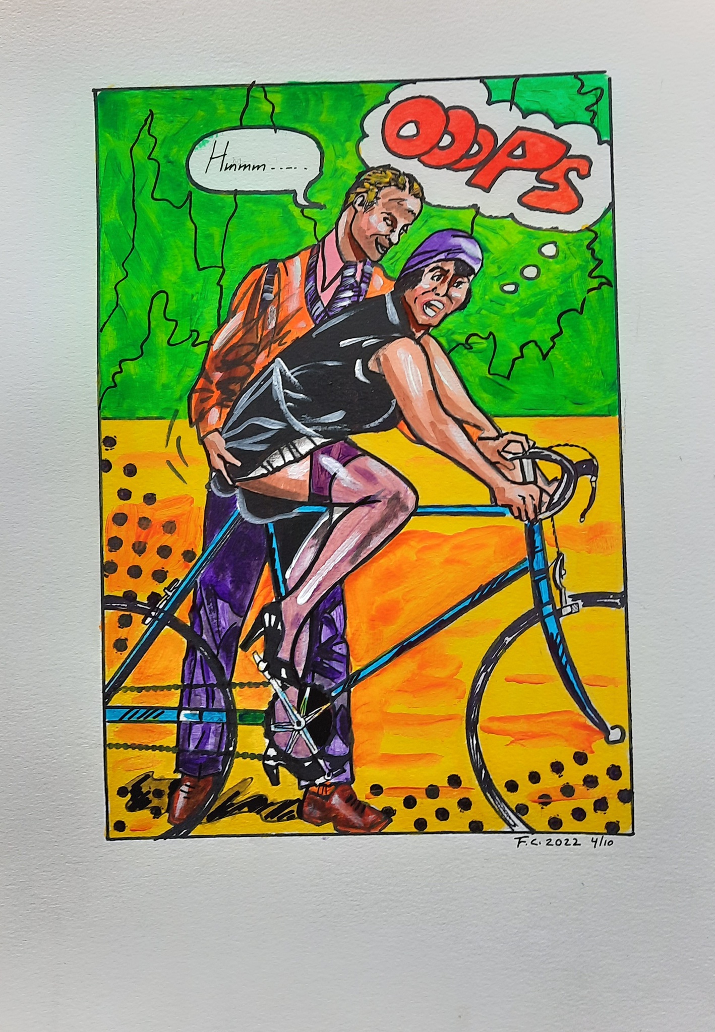 Vrouw Man Model Fietsen Erotiek Mixedmedia Popart Lingerie Vintage Flapper Leren Pikant 30s
