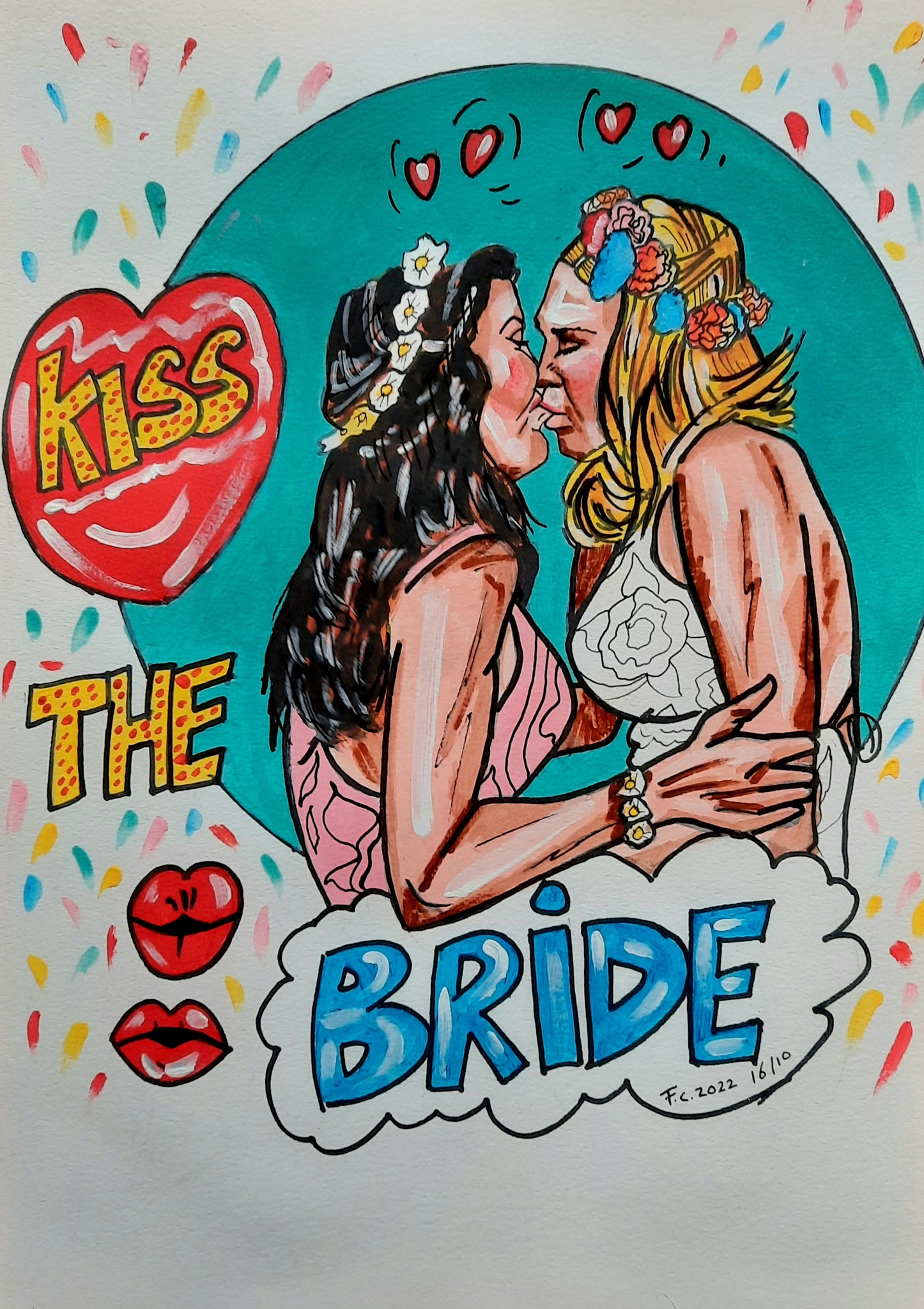 Model Kussen Huwelijk Mixedmedia Popart Bruiden 2vrouwen