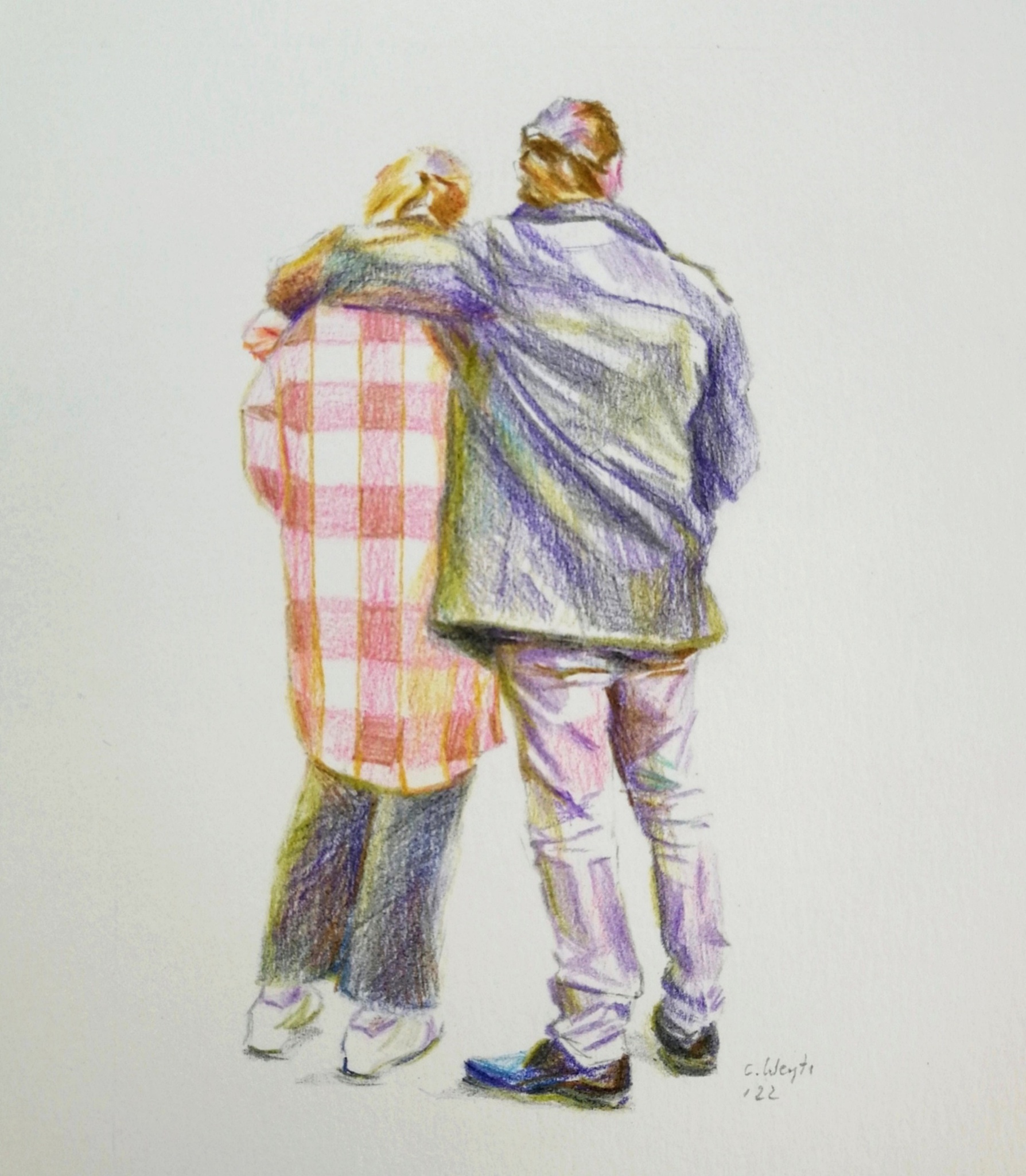 Koppel Kleurpotlood Kleurpotloodtekening Liefde Vriendschap Knuffel Weyts Tekening Sibling