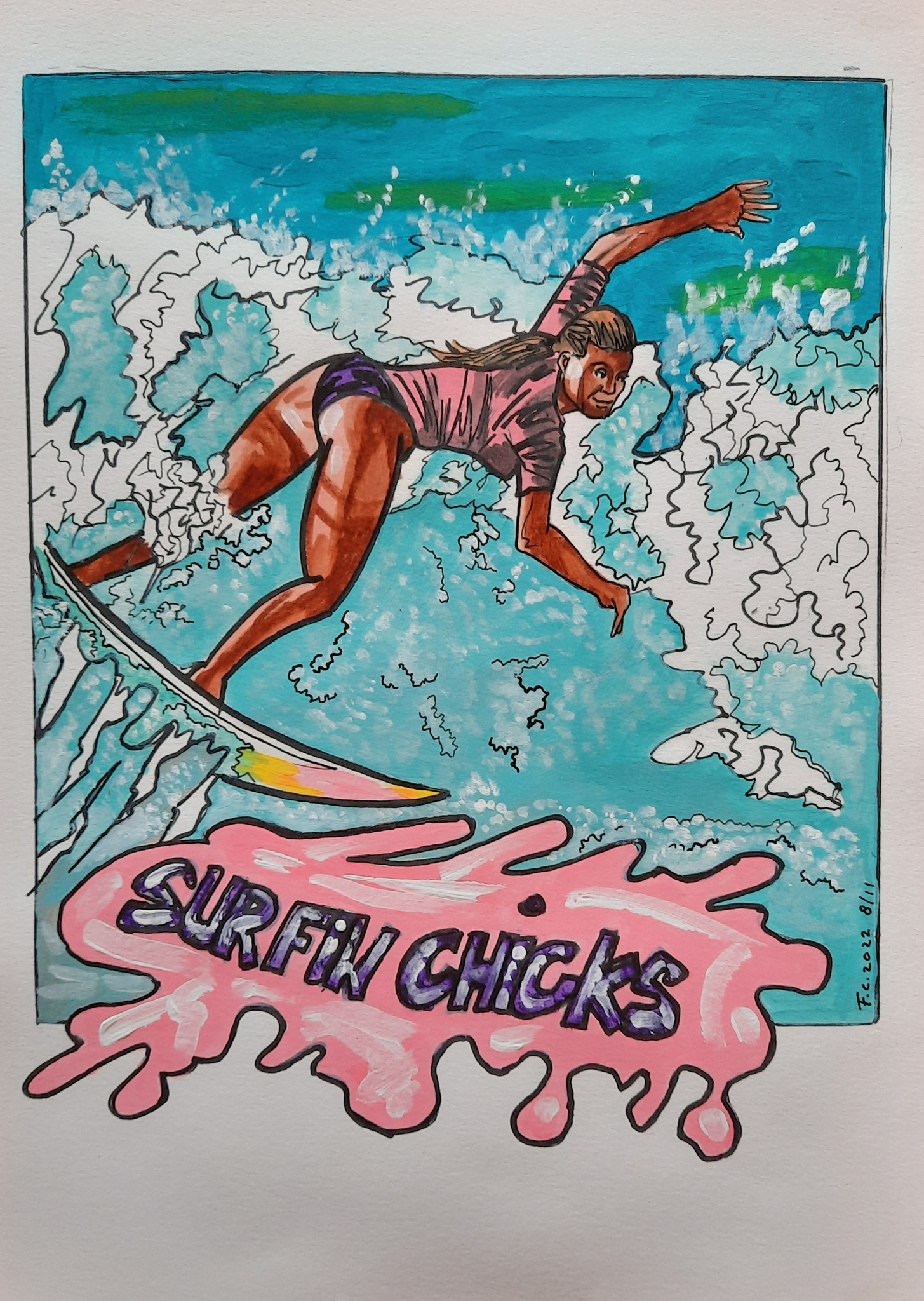 Vrouwen Zee Sport Surfen Mixedmedia Popart Surfing Model