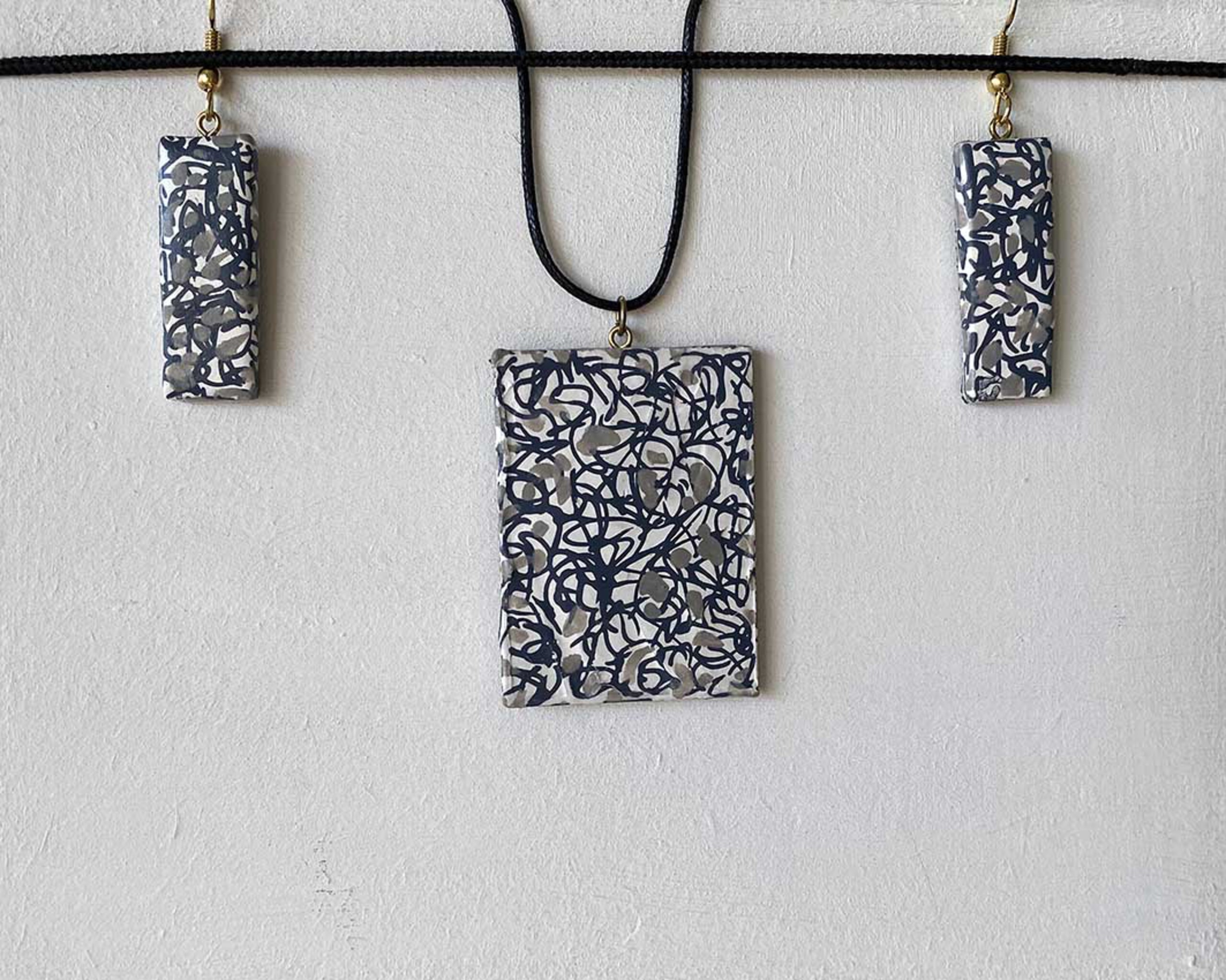 hangertje met oorhangers Afmeting : 4 x 3 cm, dikte 4 mm Oorhanger : 1 x 3 cm, dikte 3 mm