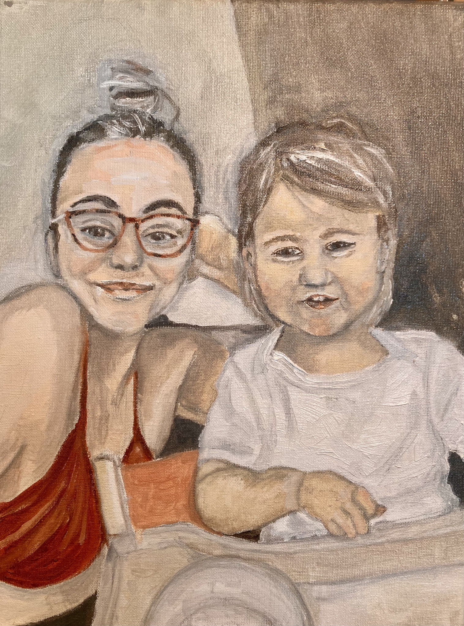 Portret Moeder Dochter Portrait Mother Daughter Olieverf Doek Canvas Oil Wit Bruin Gebrande Siena White Brown