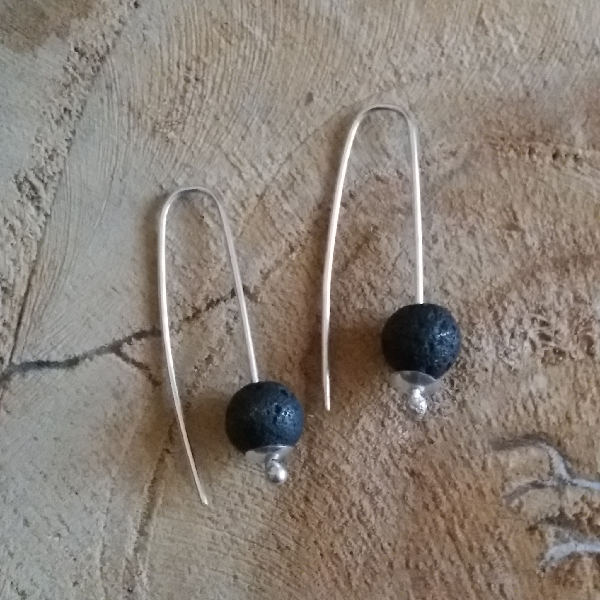 zilveren oorhangers met lava steentje