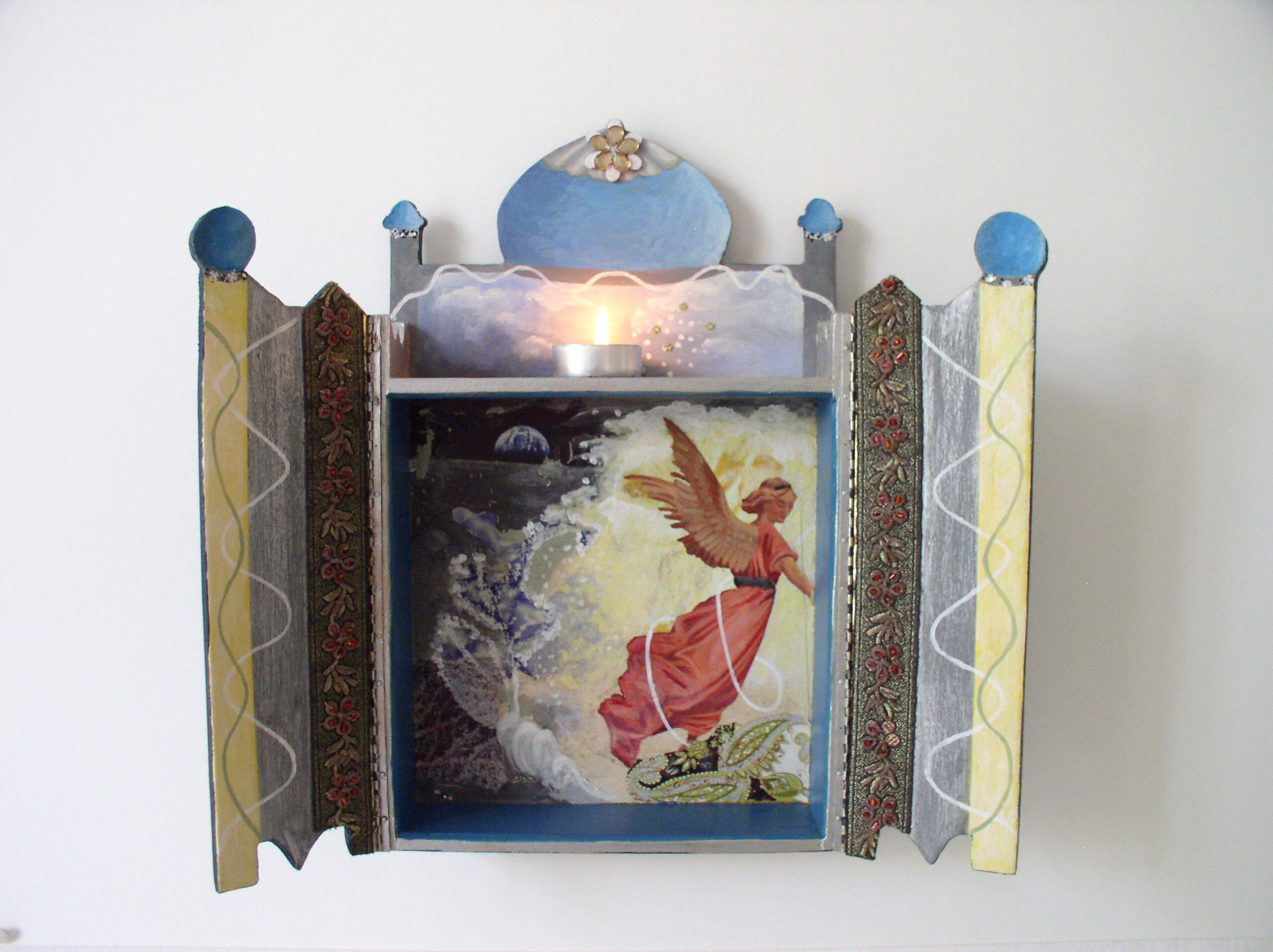 In mijn schilderijen zie je de wonderlijke wereld van de natuur met soms sprookjesachtige figuren. Naast schilderijen maak ik altaartjes en kandelaars van gerecycled en beschilderd glas.