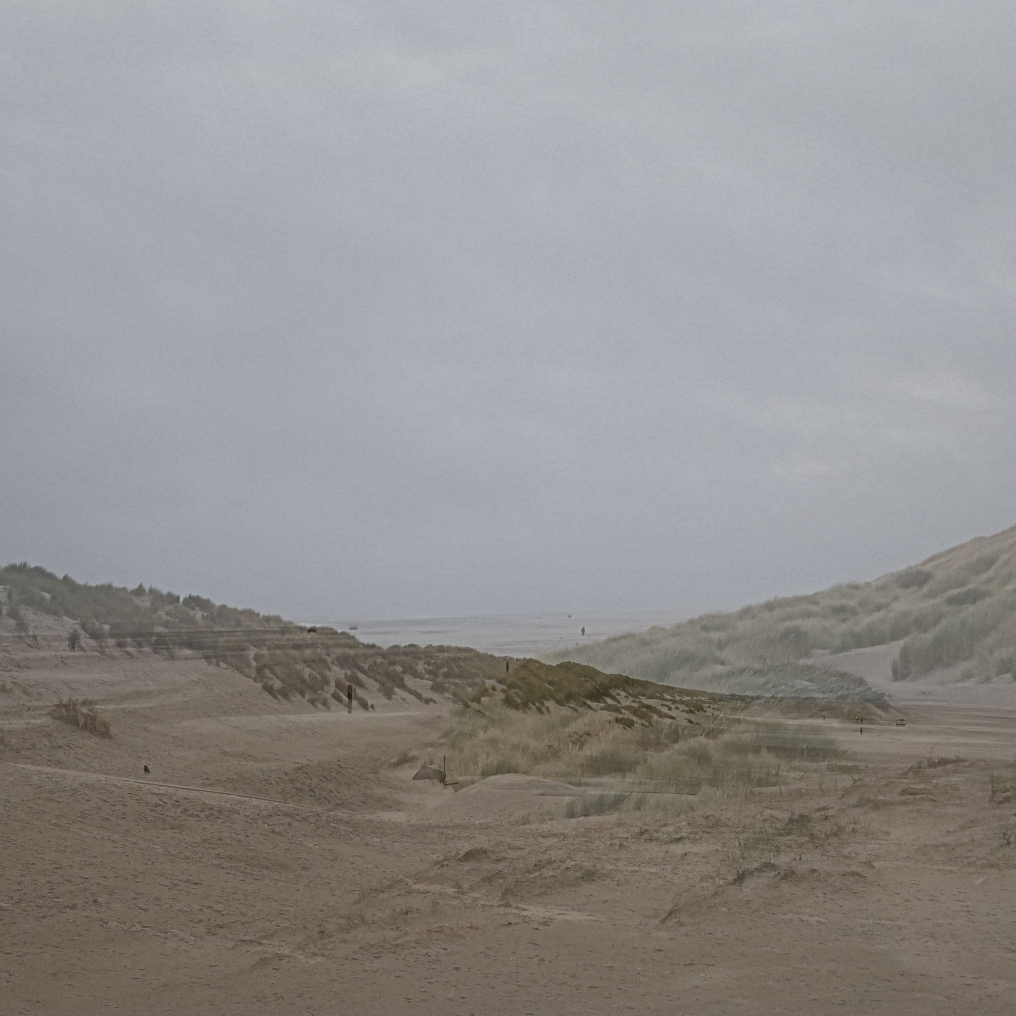 Dubbelopname van een doorkijk bij een duinenrij