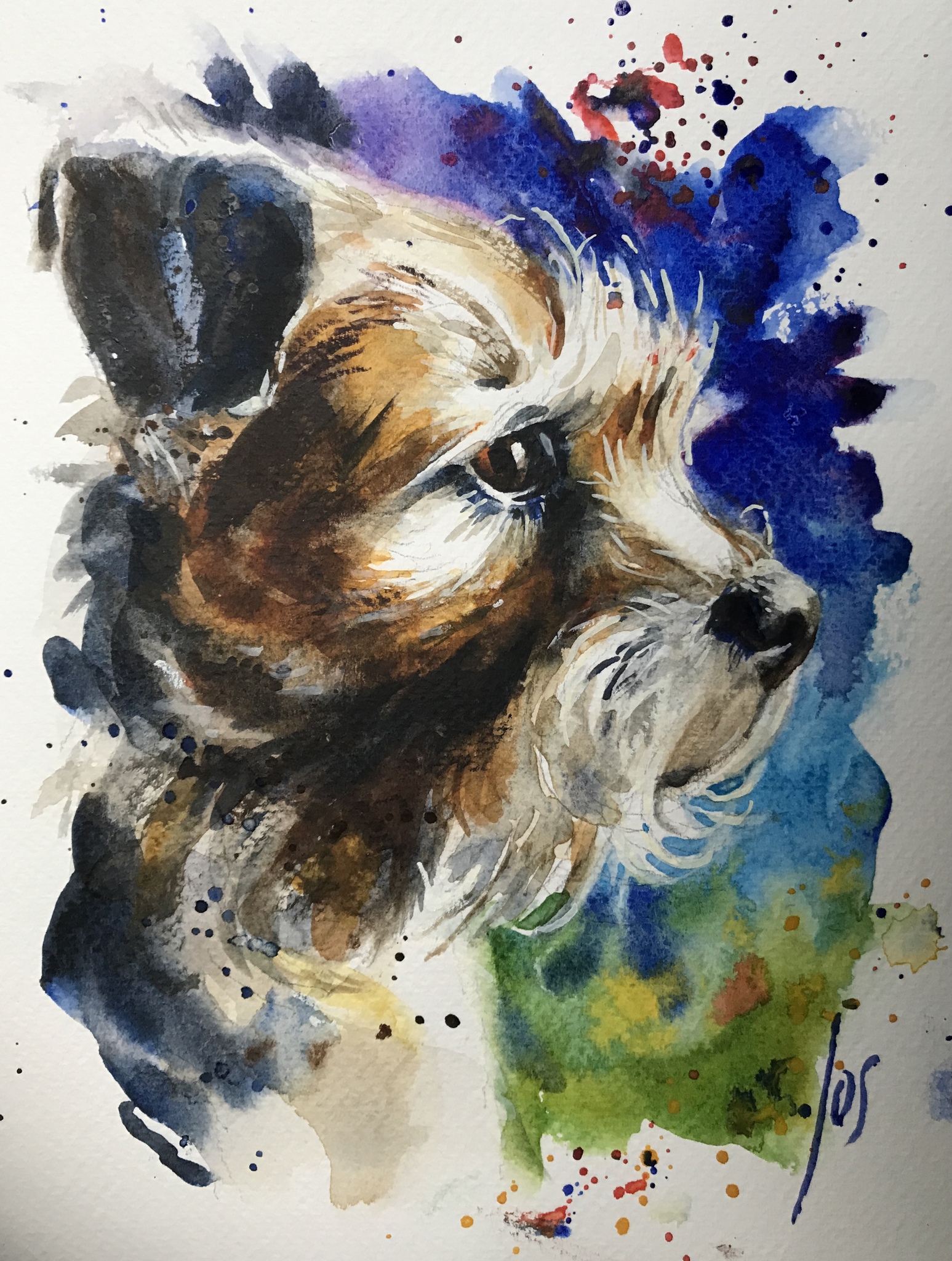 Border Terrier Jack in aquarel is niet te koop, maar evt. kan ik van uw hond een soortgelijke aquarel maken