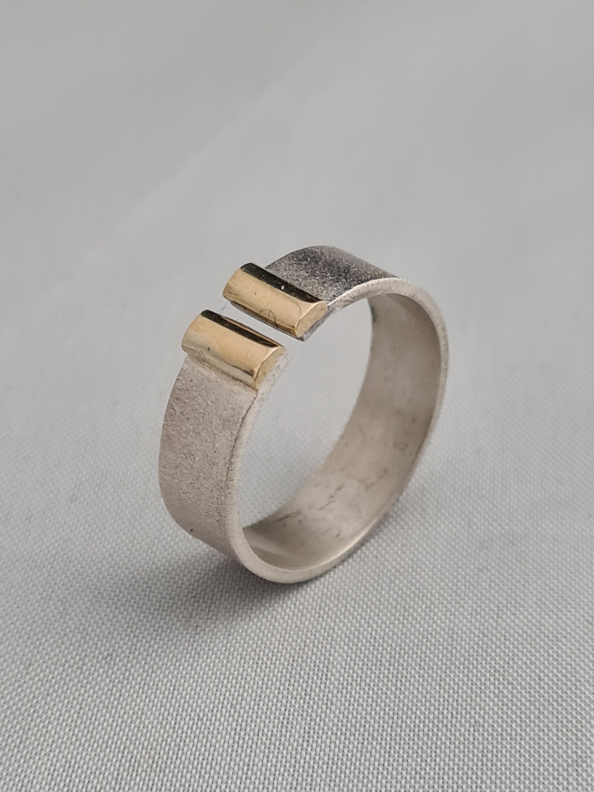 open zilveren ring met 2 gouden staafjes