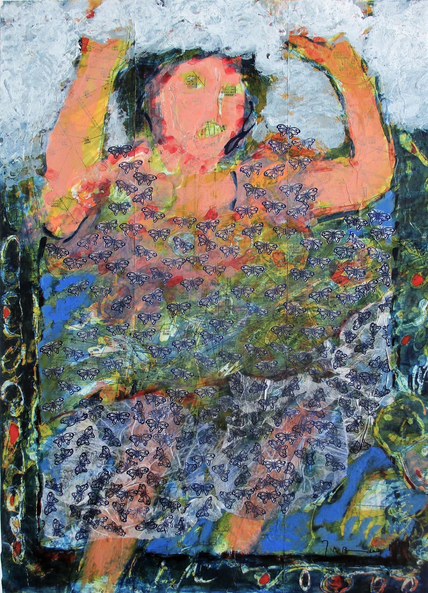 Gemengde techniek op landkaart (met collage )