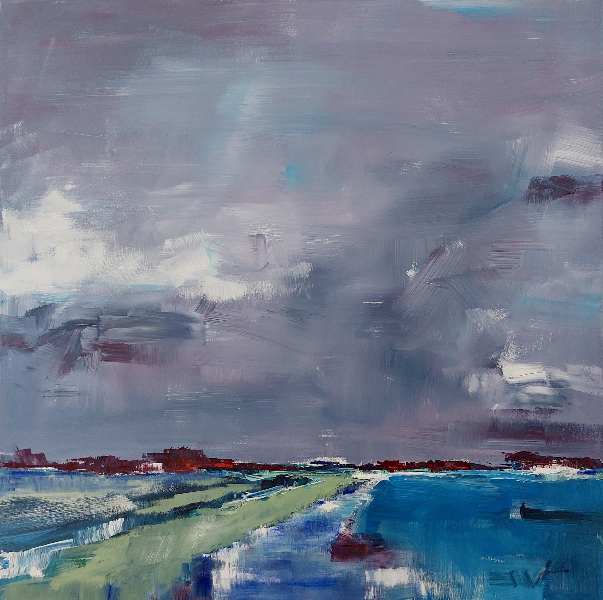 Polder, 100 x 100cm een werk in acryl op een katoenen doek, in baklijst.