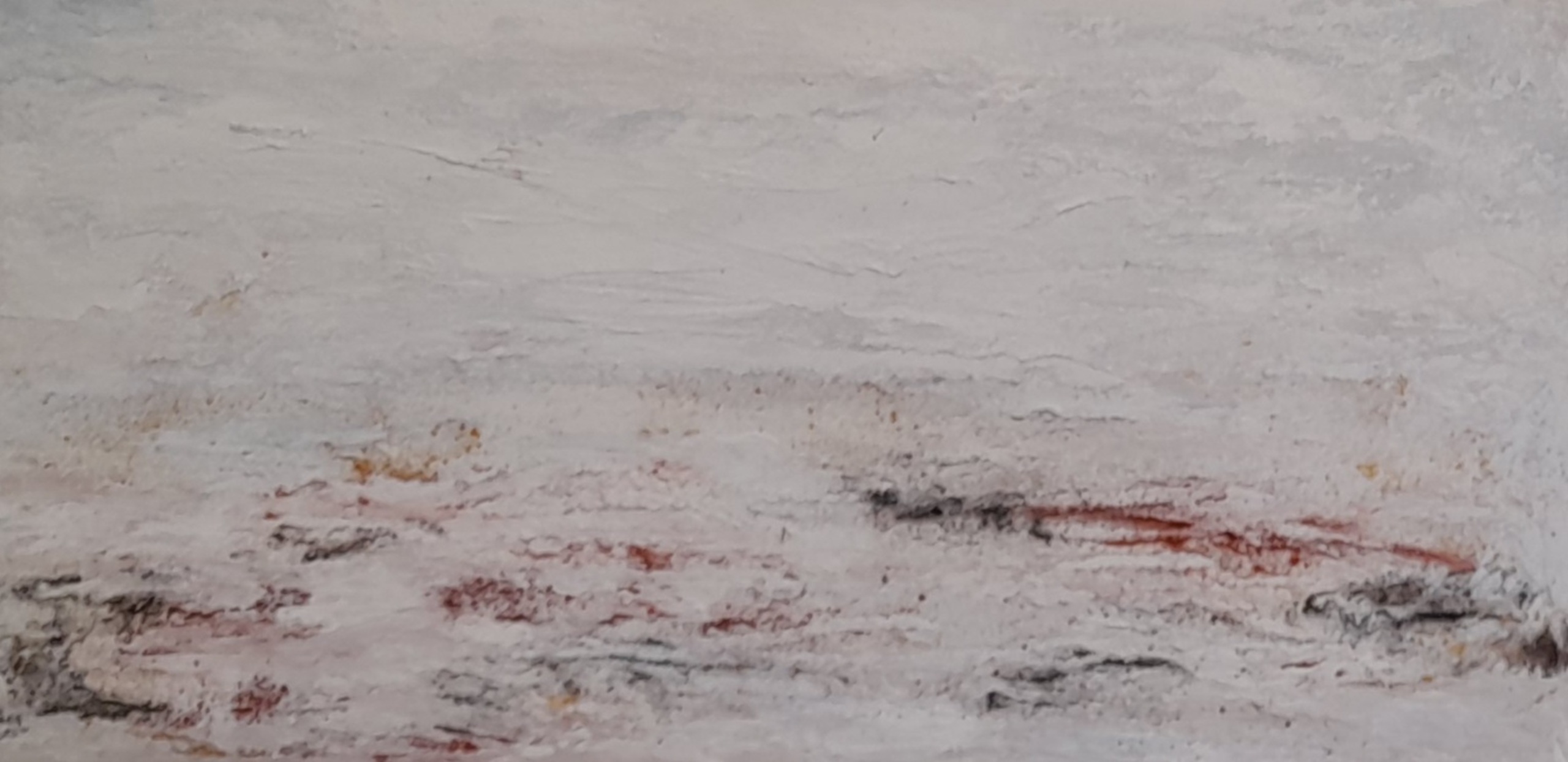 Gemengde techniek op doek, acryl gemengd met zand aangebracht met borstel en paletmes.