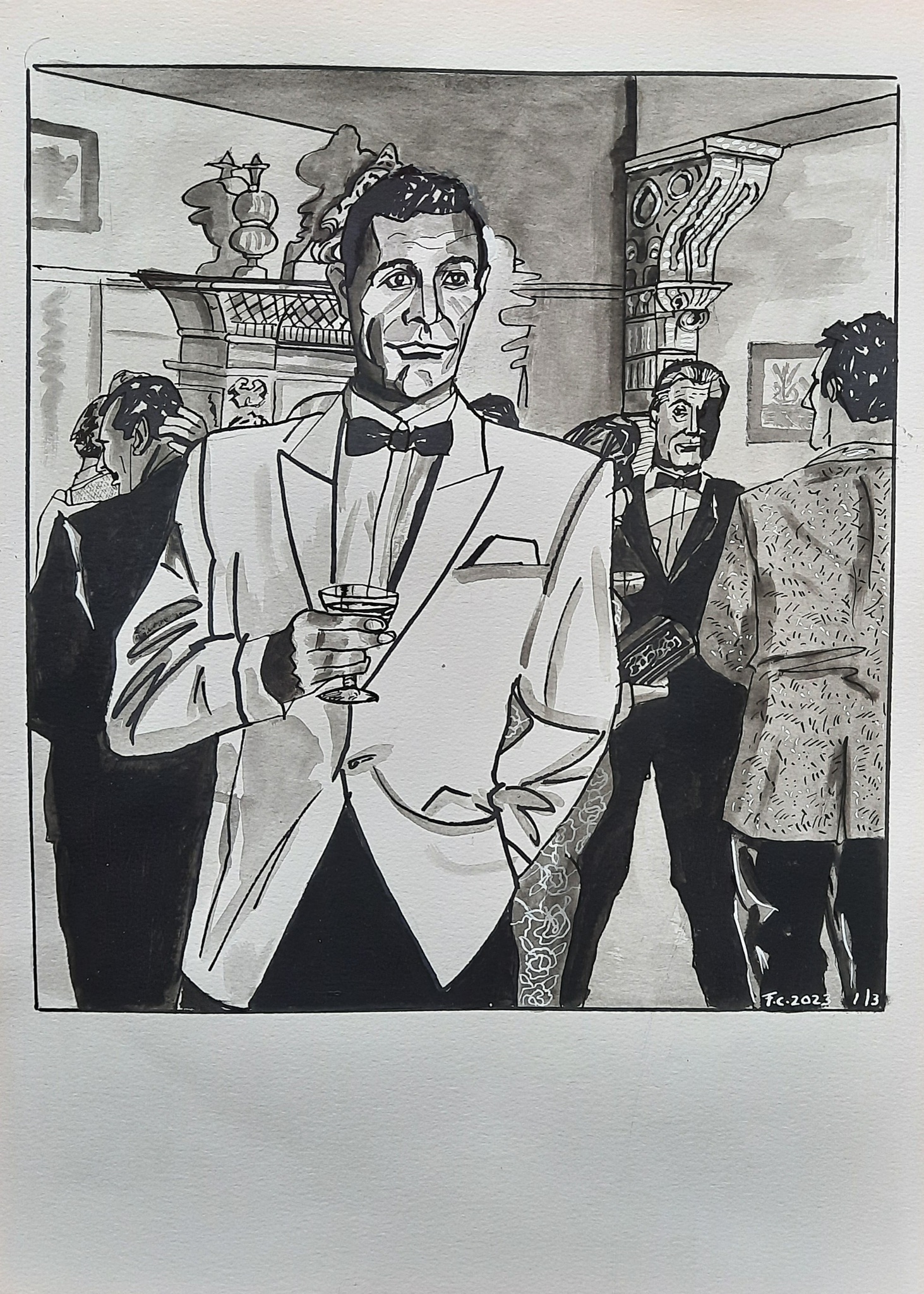 Portret Model Zwart/wit Film Mission Jamesbond Seanconnery Cocktailparty