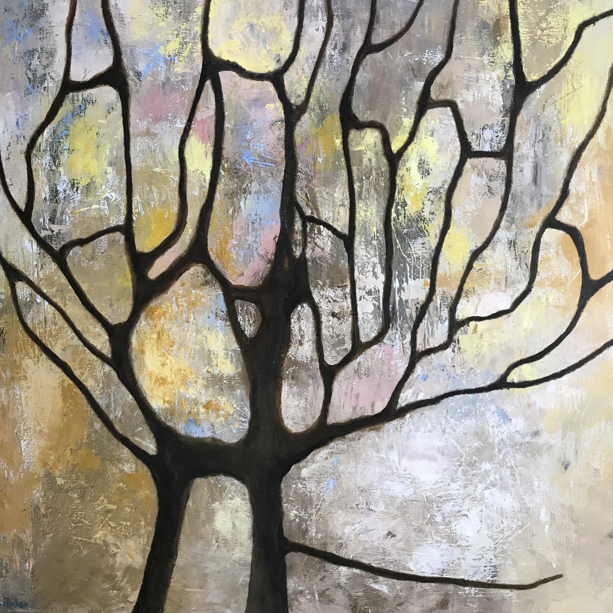 Organische lijnvoering in licht van de zon. Dit schilderij laat een krachtige uitstraling zien om toegerust het "leven" aan te gaan.