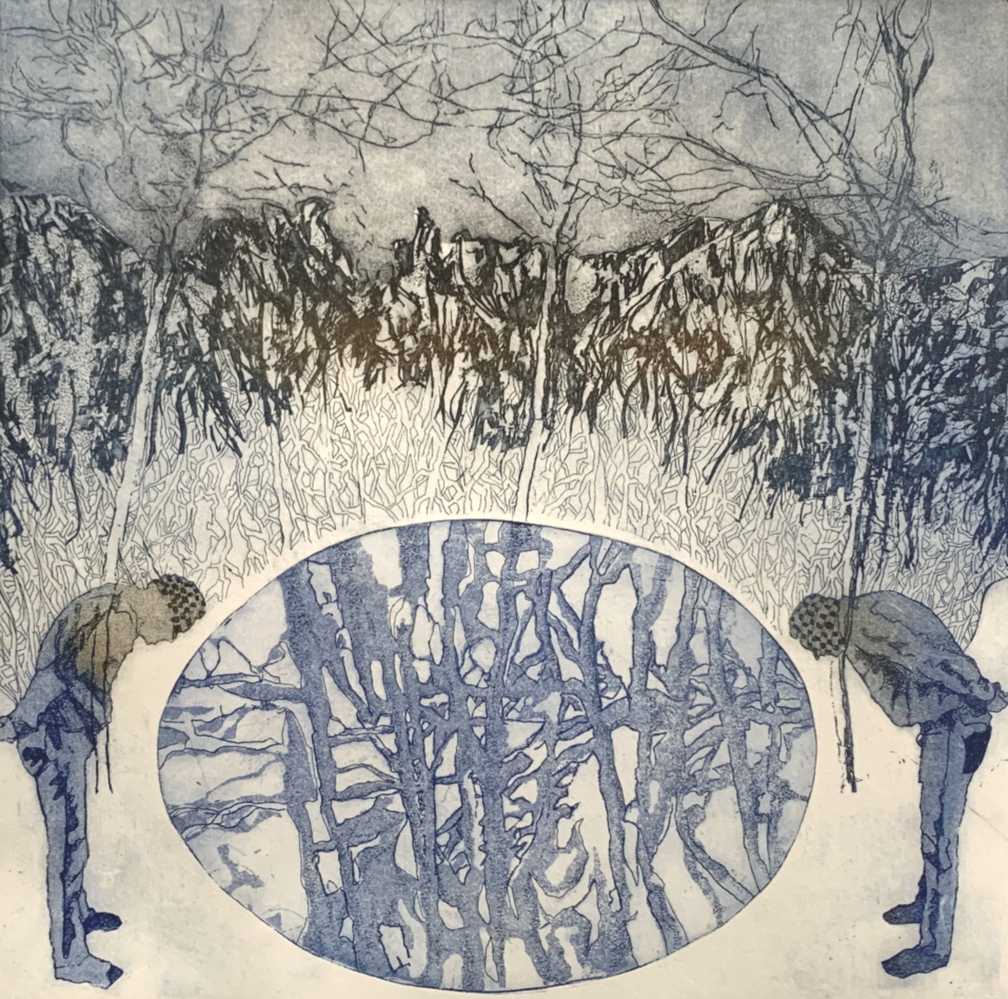 Maaike H. Schenk maakt tekeningen maar vooral grafiek, etsen. Haar werk bestaat uit fragmenten van alledaagse dingen, gerangschikt totdat er een eigen orde en ritme ontstaat. Mensen in hun leefomgeving zoals de chaos en drukte van de stad, een luide parade, de stille natuur, een begroeting, zijn aanleiding voor verhalend werk. De figuratieve elementen in lijn, gaan met abstracte vormen in dialoog, worden naast elkaar geplaatst als contrast of juist samengevoegd in een zingevend verband. Maaike gebruikt herhaling en tegenstellingen met verwondering over het moment als leidraad.
