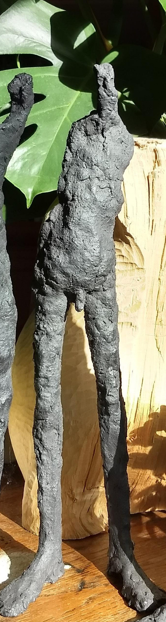 Sobere zwarte figuren, opgebouwd met grove zwart-bakkende klei.