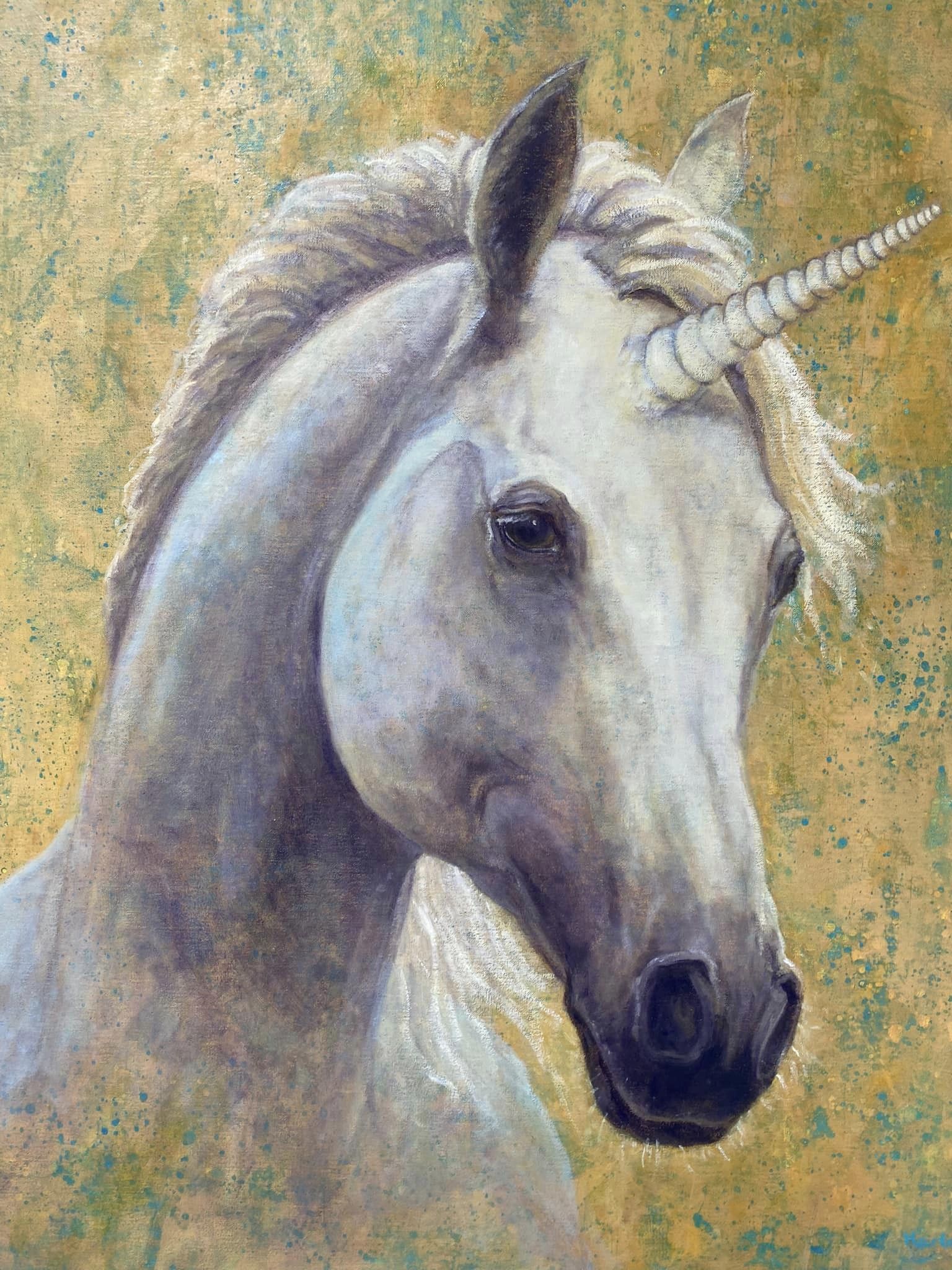 Schilderij Wit Blauw Gold Paars Goud Groen Blue Licht Liefde Olieverf Painting Love Light Rust Eenhoorn Spiritualiteit Dimensie Zuiverheid Unicorn Purity Krachtdier Lichtwerker Marloesbuigelboering Onderscheidingsvermogen