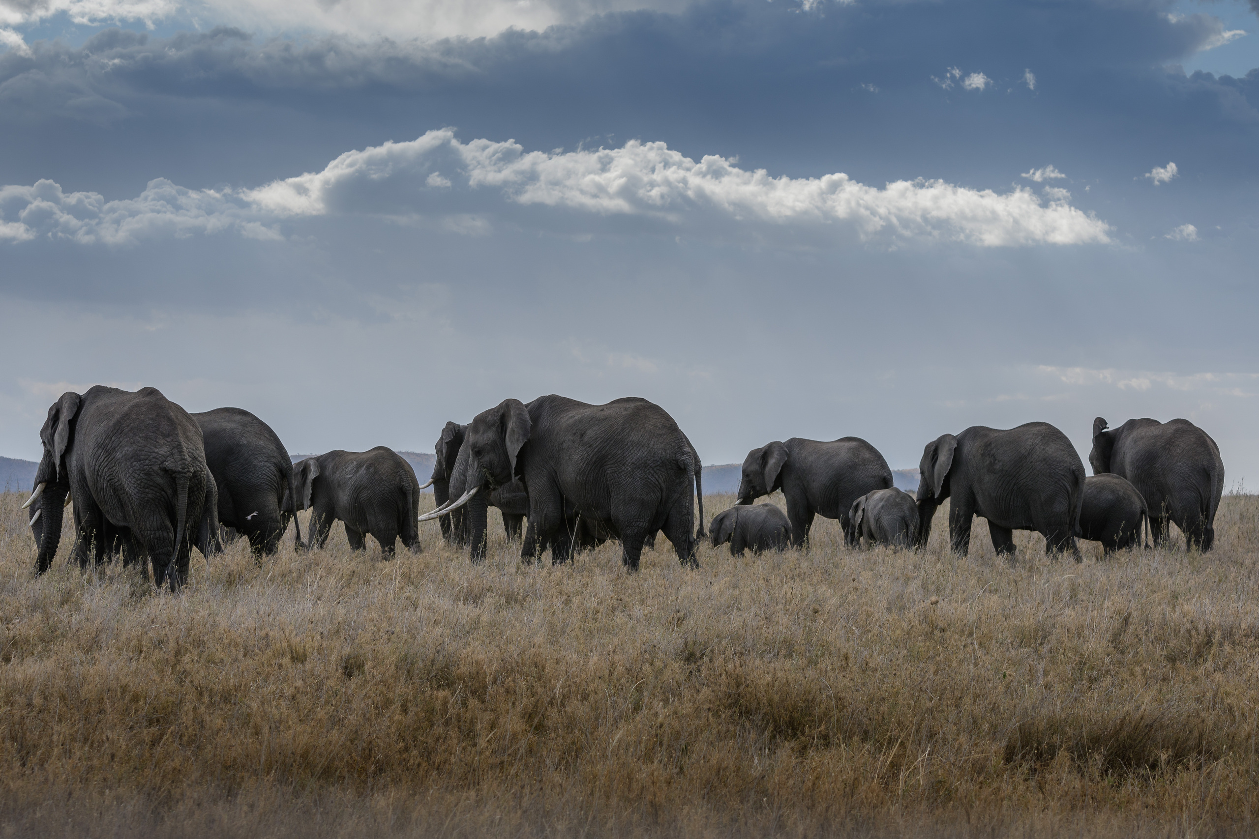 Een groep Afrikaanse olifanten geleid door hun materiach