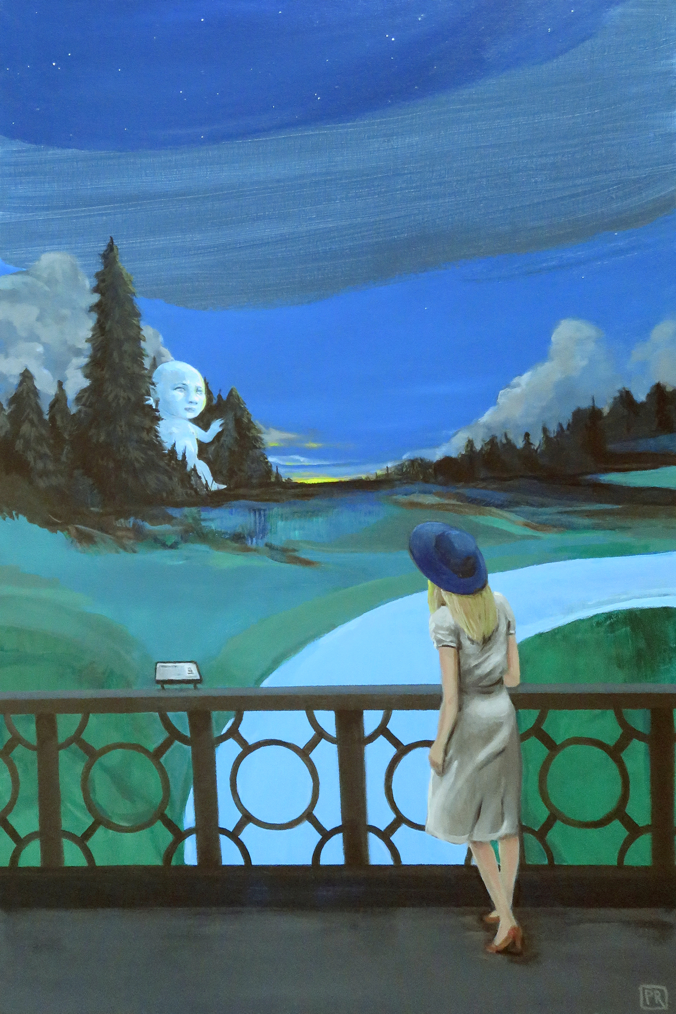 Landschap Vrouw Baby Lucht Hoed Surreëel Uitzicht Symbolisch Panorama