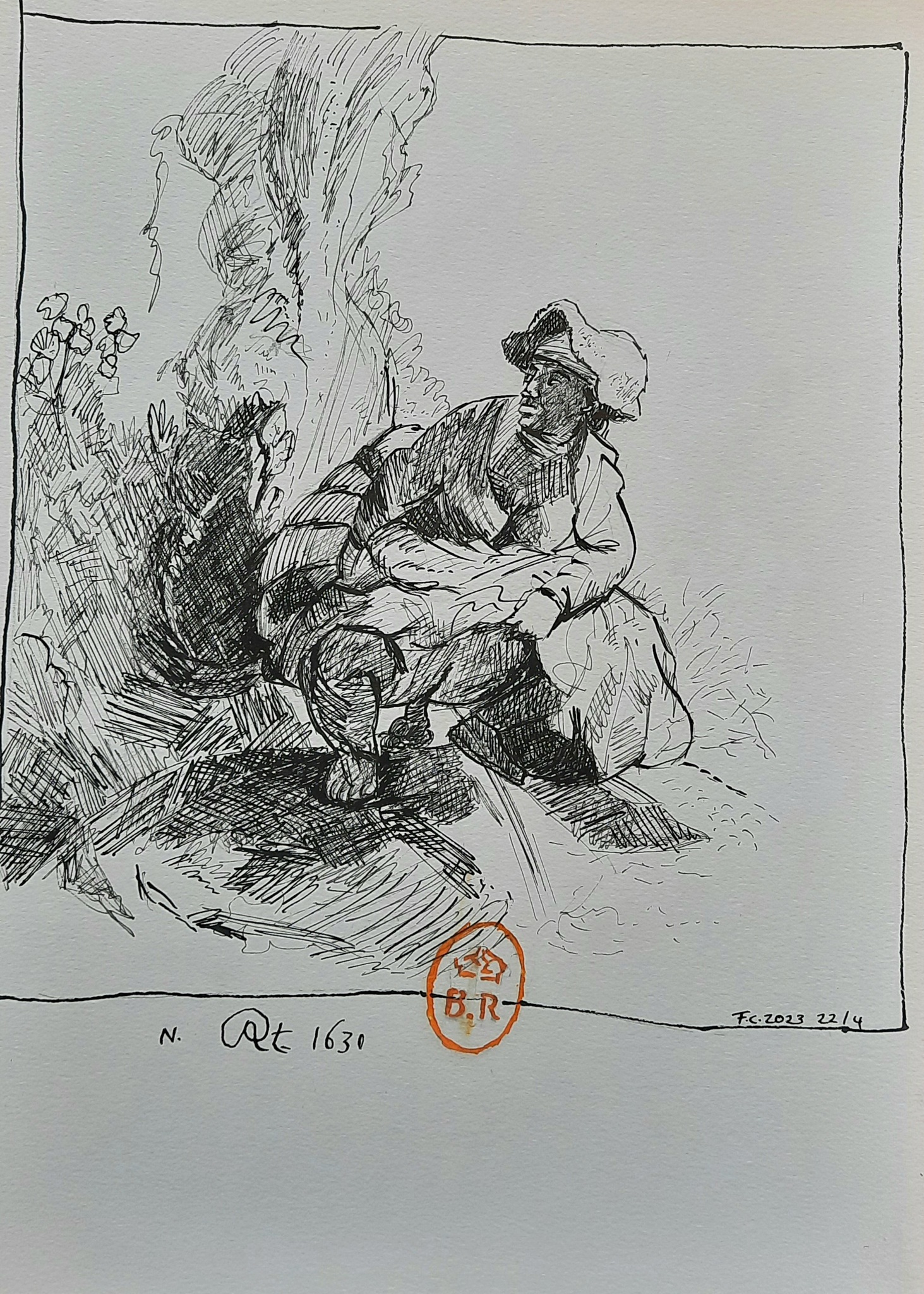 Vrouw Natuur Boom Rembrandt Plassen Boerin Inkttekening Poepen