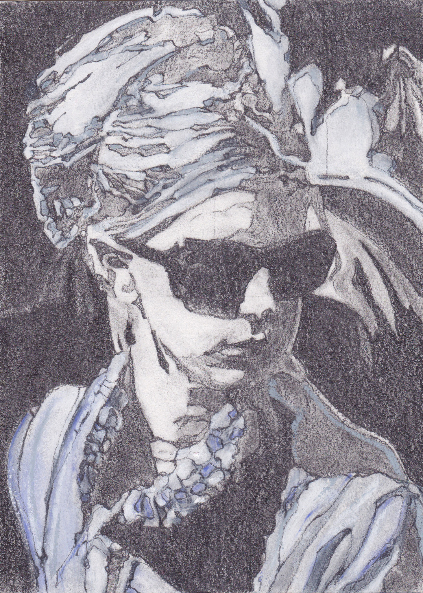 Portret gebaseerd op fragment van een krantenfoto, waarschijnlijk uit de Volkskrant, uitgegeven ergens tussen 2005 en 2018. Los van de context, los van de inhoud en los van de gebeurtenis probeer ik een vervliegend moment (niets veroudert zo snel als krantennieuws) langer vast te houden en te laten zien dat het altijd om mensen draait, ook al weten we niet wie het is, wanneer het beeld genomen is en waar de gebeurtenis plaatsvindt.