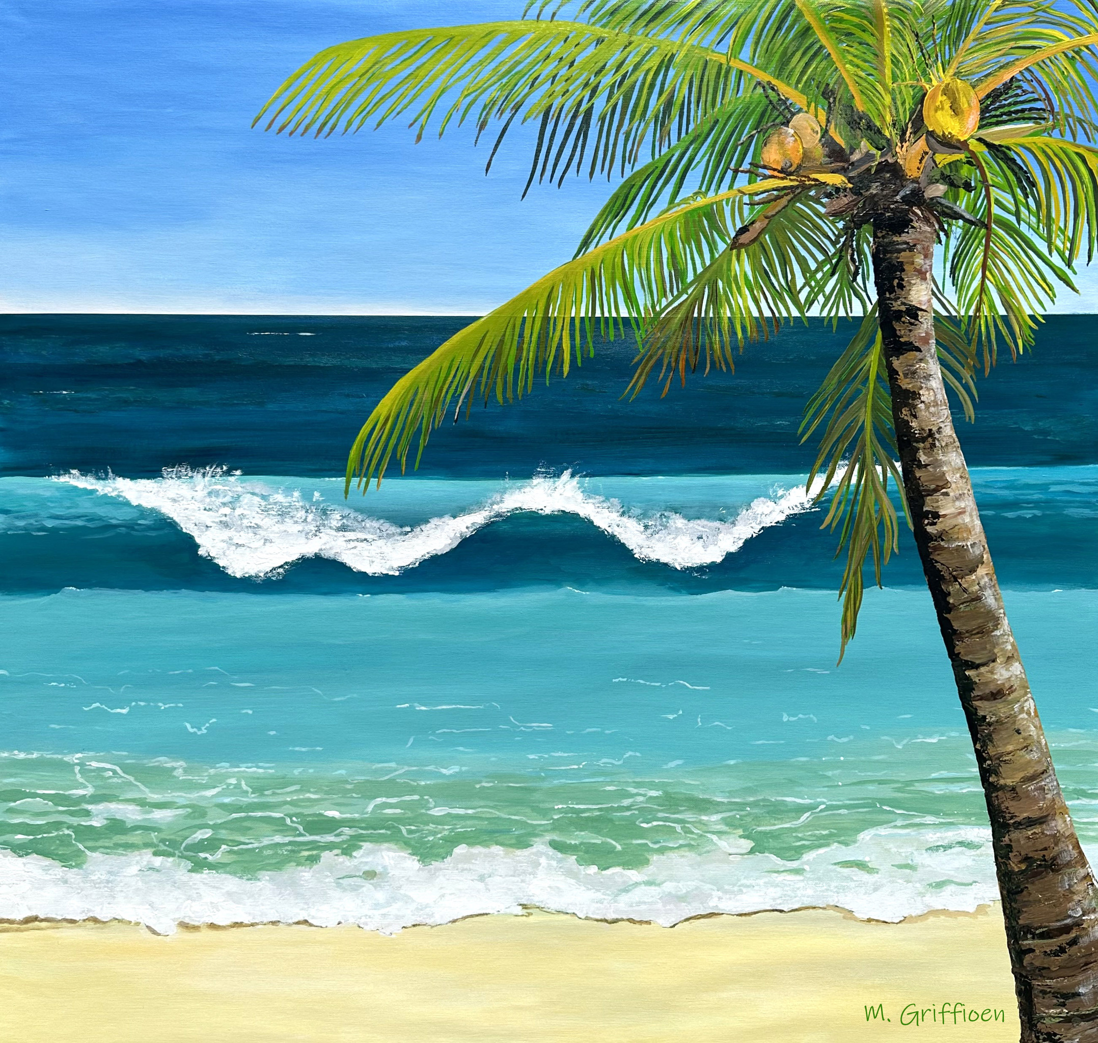 Oceaan Zee Water Beach Strand Palm Palmtree Caribbean Vakantie Golf Surfen Summer Holiday Travel Mirjamgriffioenart Cocos Kokosnoot Beachlife Islandgirl Caribbeanartist Turquase Life