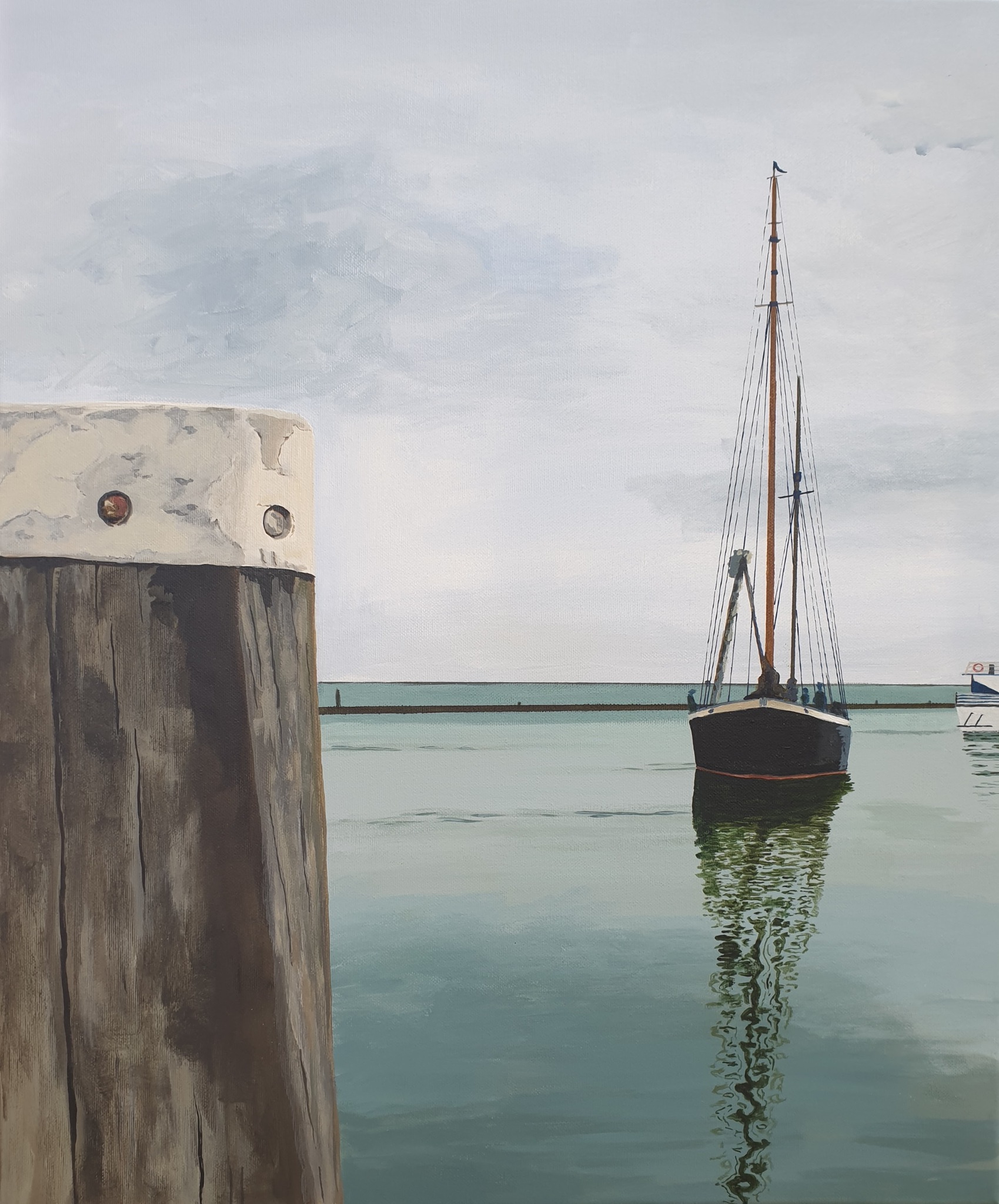 De zeilen gestreken, de haven in