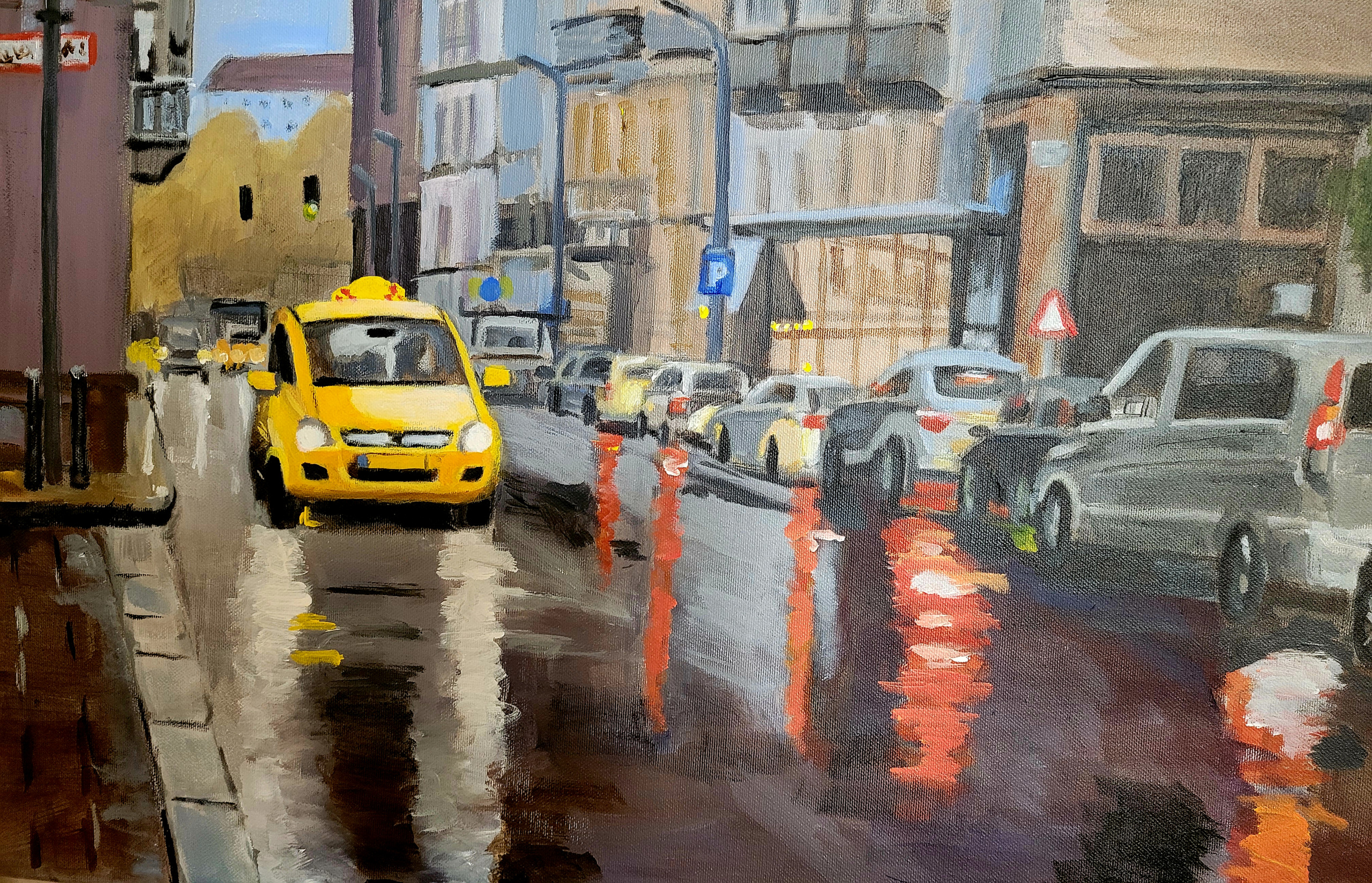 Taxi in de regen