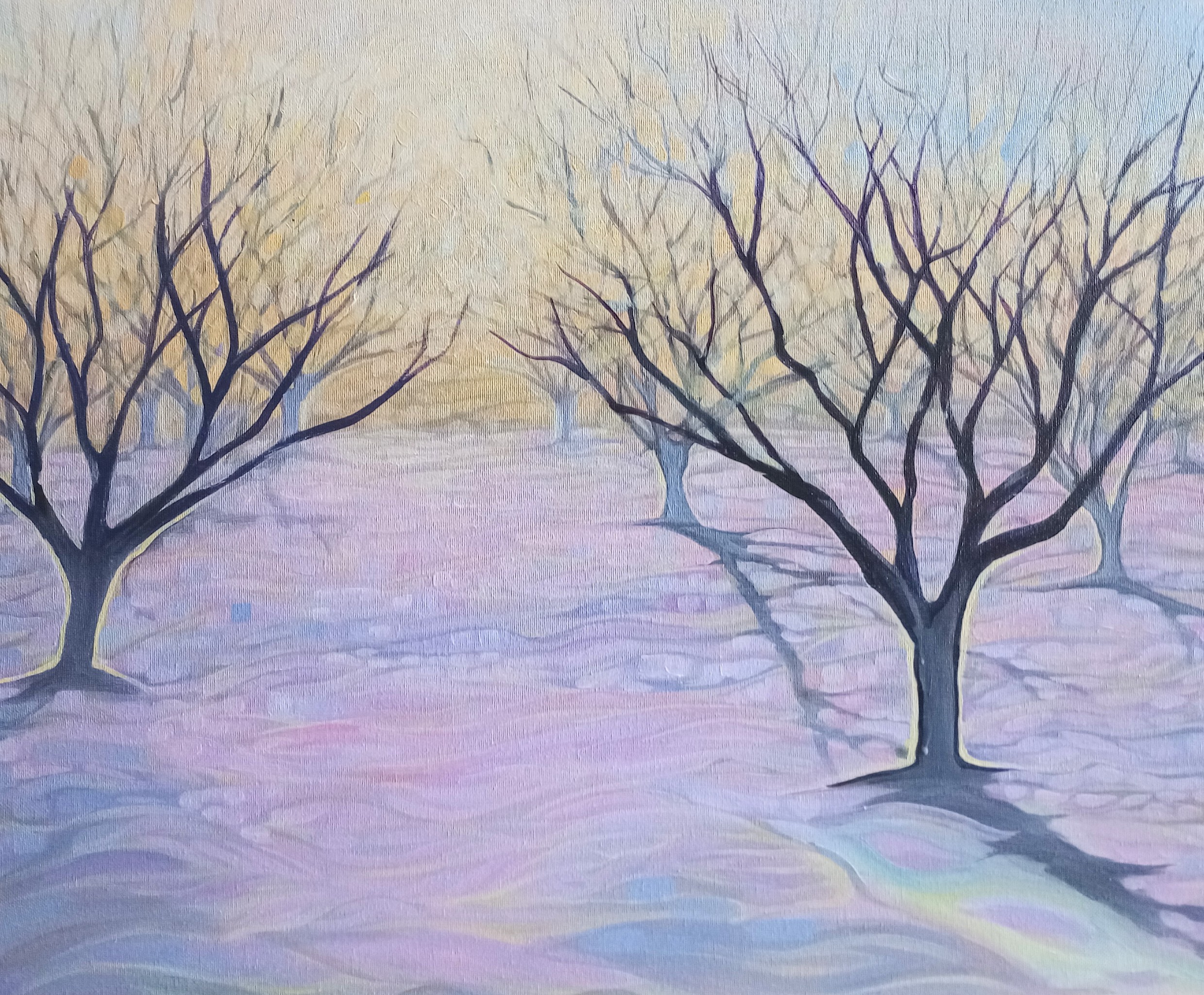 Pastelkleuren Doek Acrylverf Boomgaard Winter