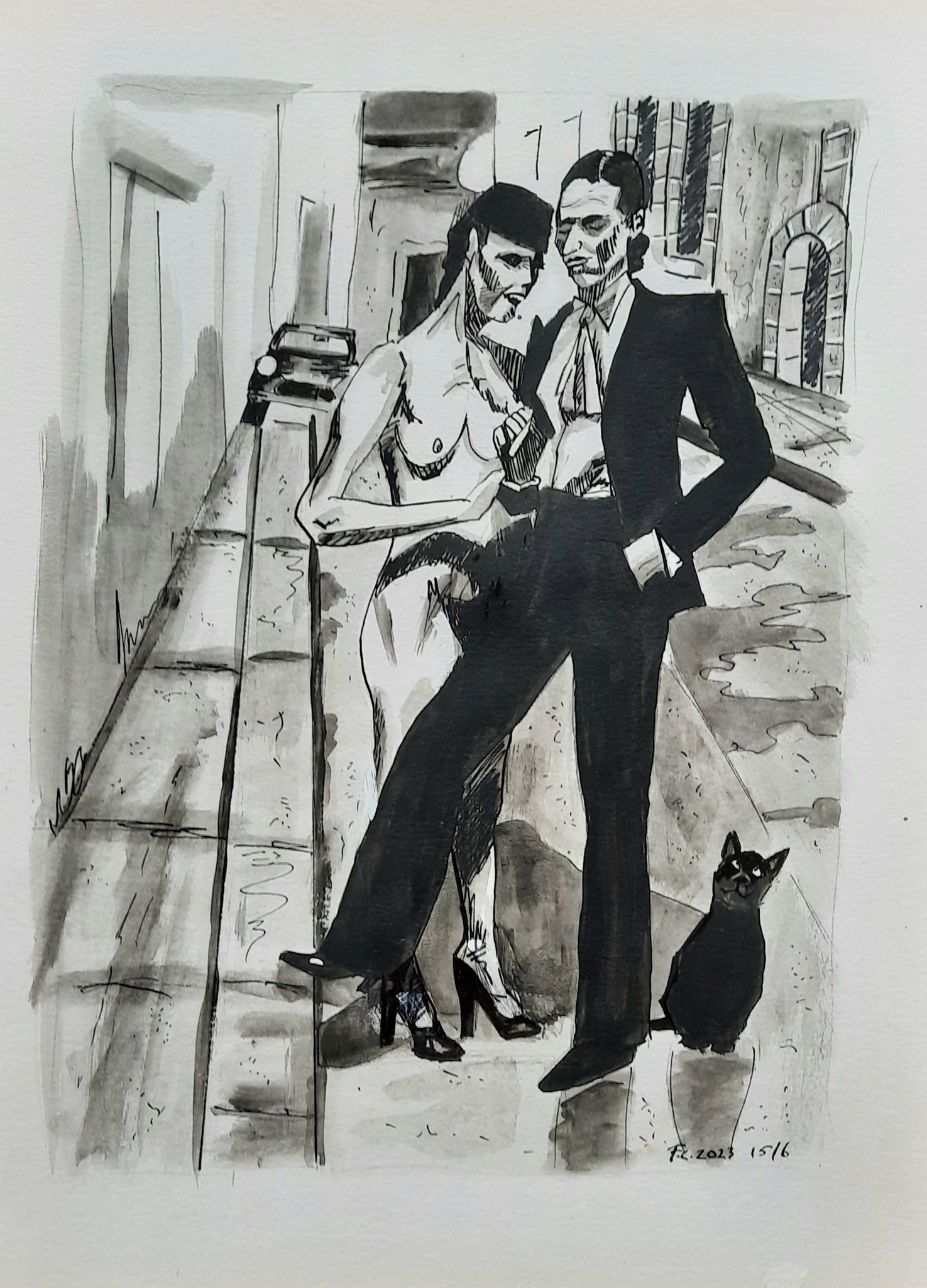 Vrij naar een foto van Helmut Newton