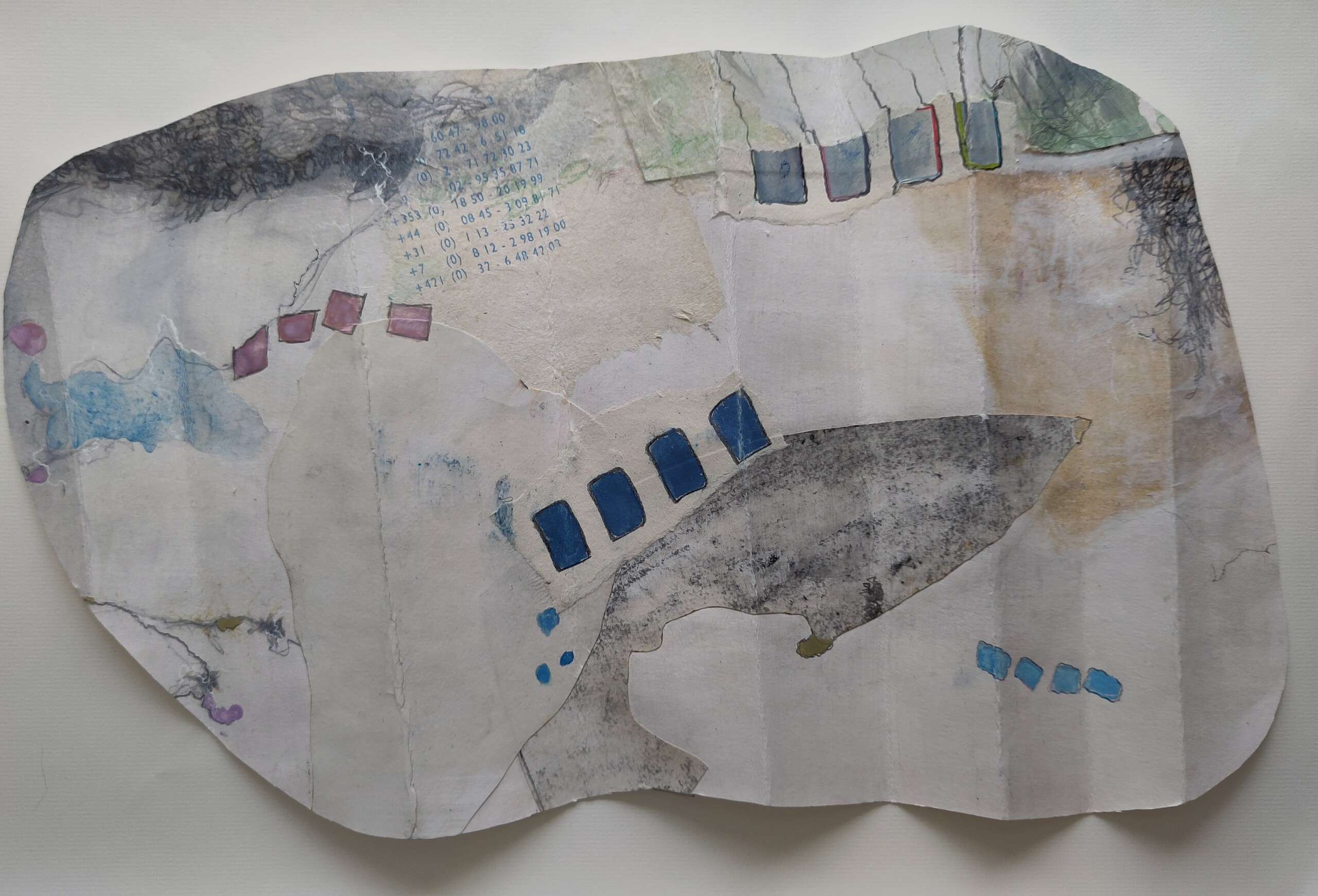 Tekening bouwsel waar ik in 2007 aan ben begonnen. Nu is het af. Collage, viltstift, krijt, potlood, vezels, aquarel.