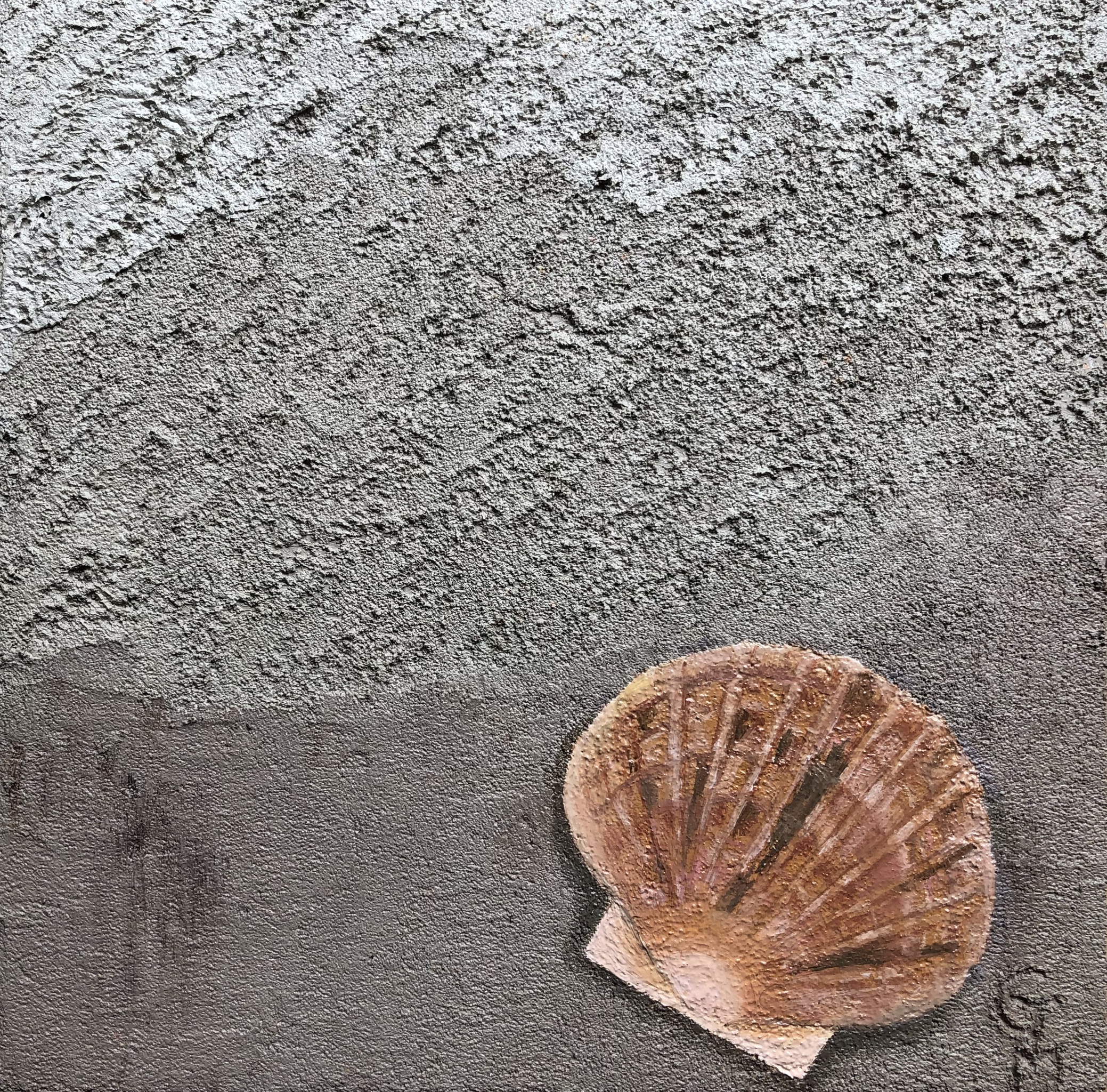 Mantelschelp, achtergrond geschilderd met Texels zand en olieverf