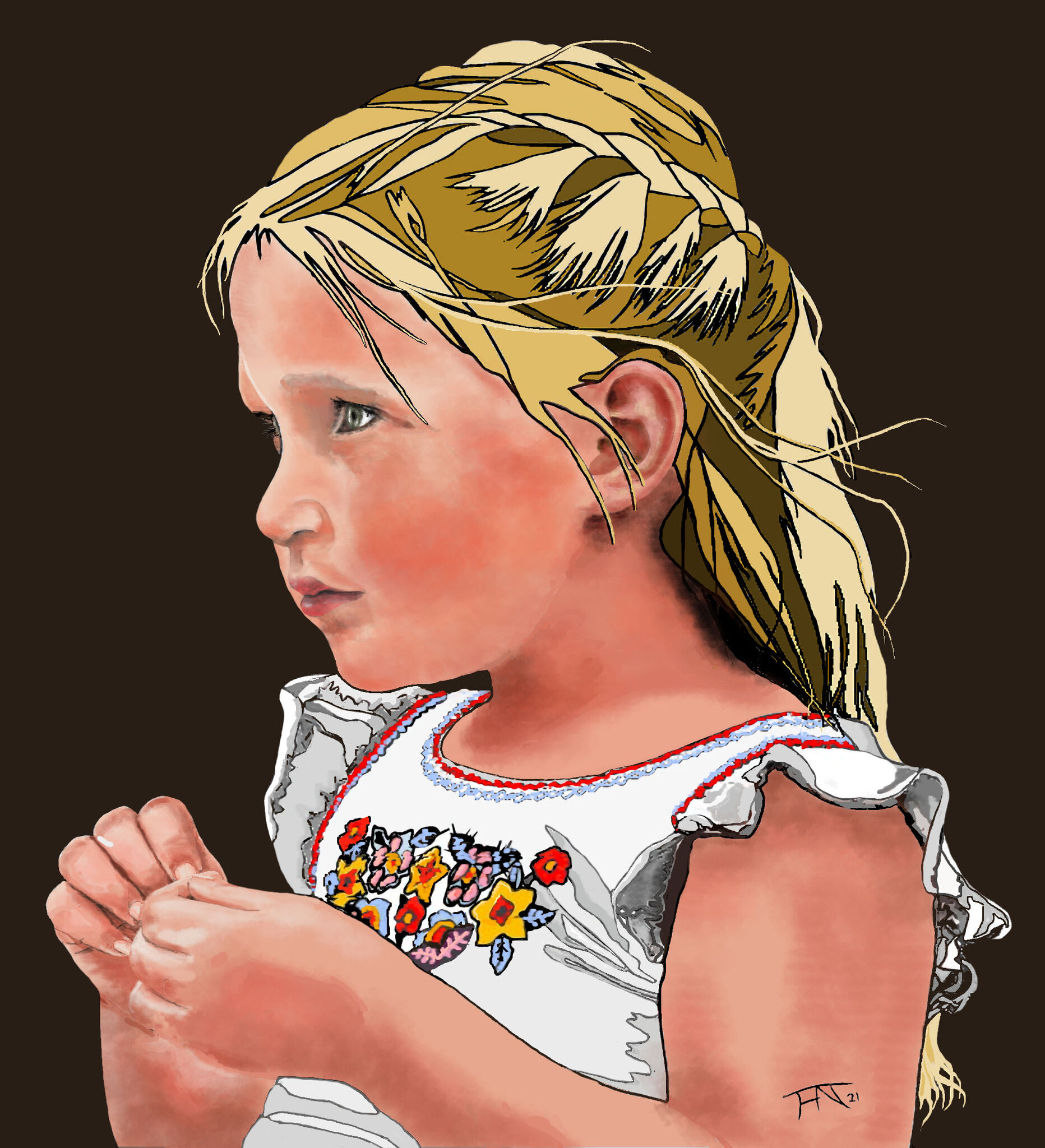 Mijn kleindochter Lina. Ik heb het met brushtecnieken op de computer gemaakt. Ik gebruik voor het haar een andere techniek dan het gezicht.