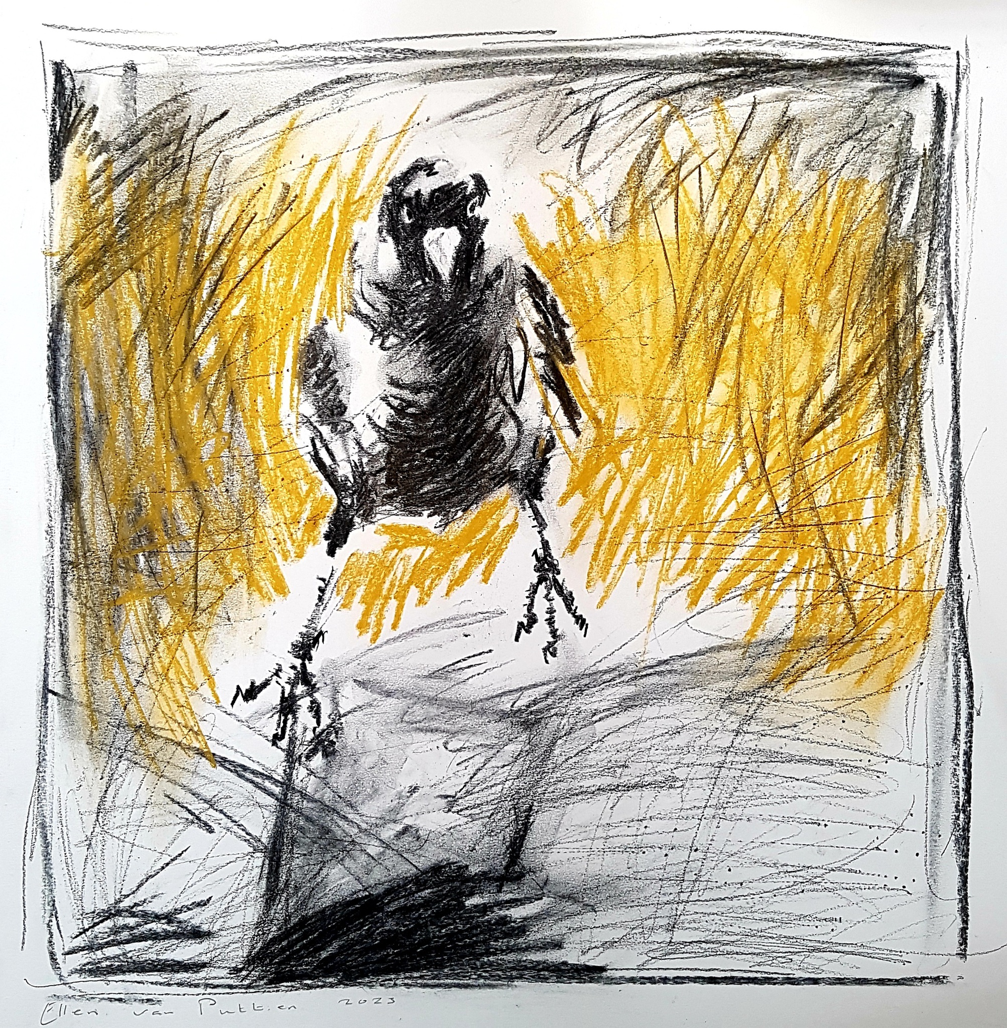 Geel Houtskool Conté Brutaal Kauw Kauwtje Jackdaw Corvus Monedula