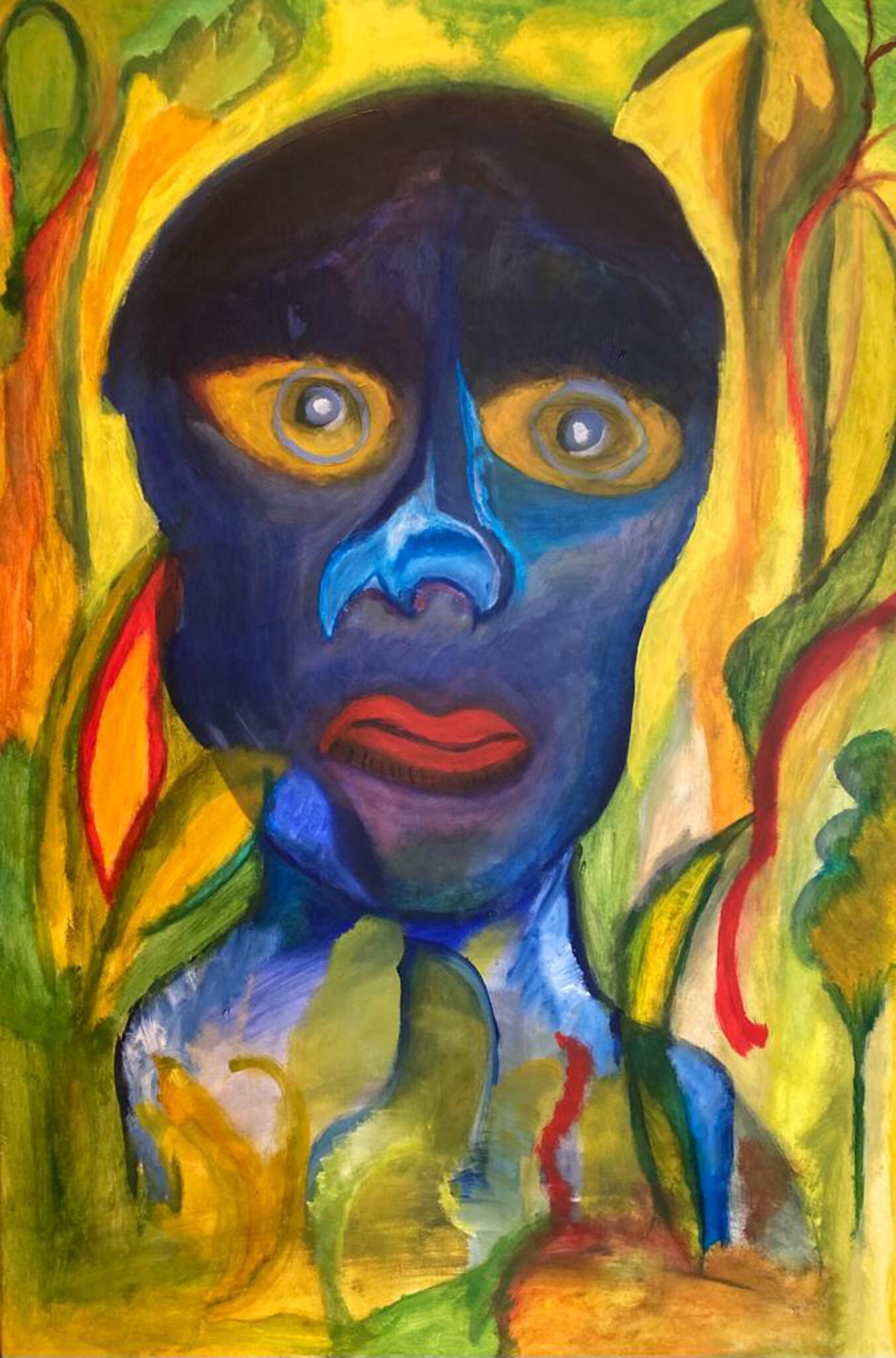 Titel : Blauwman het schilderij is op basis van Acryl verf op katoen / linnen