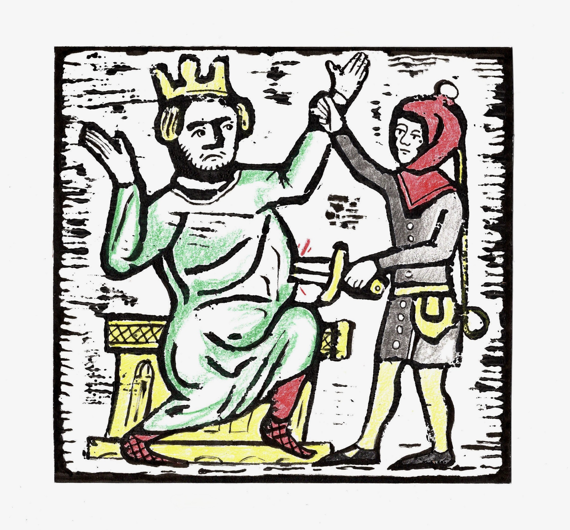 Eglon Ehud Moord Koning Houtsnede Martin De Heer Sliedrecht