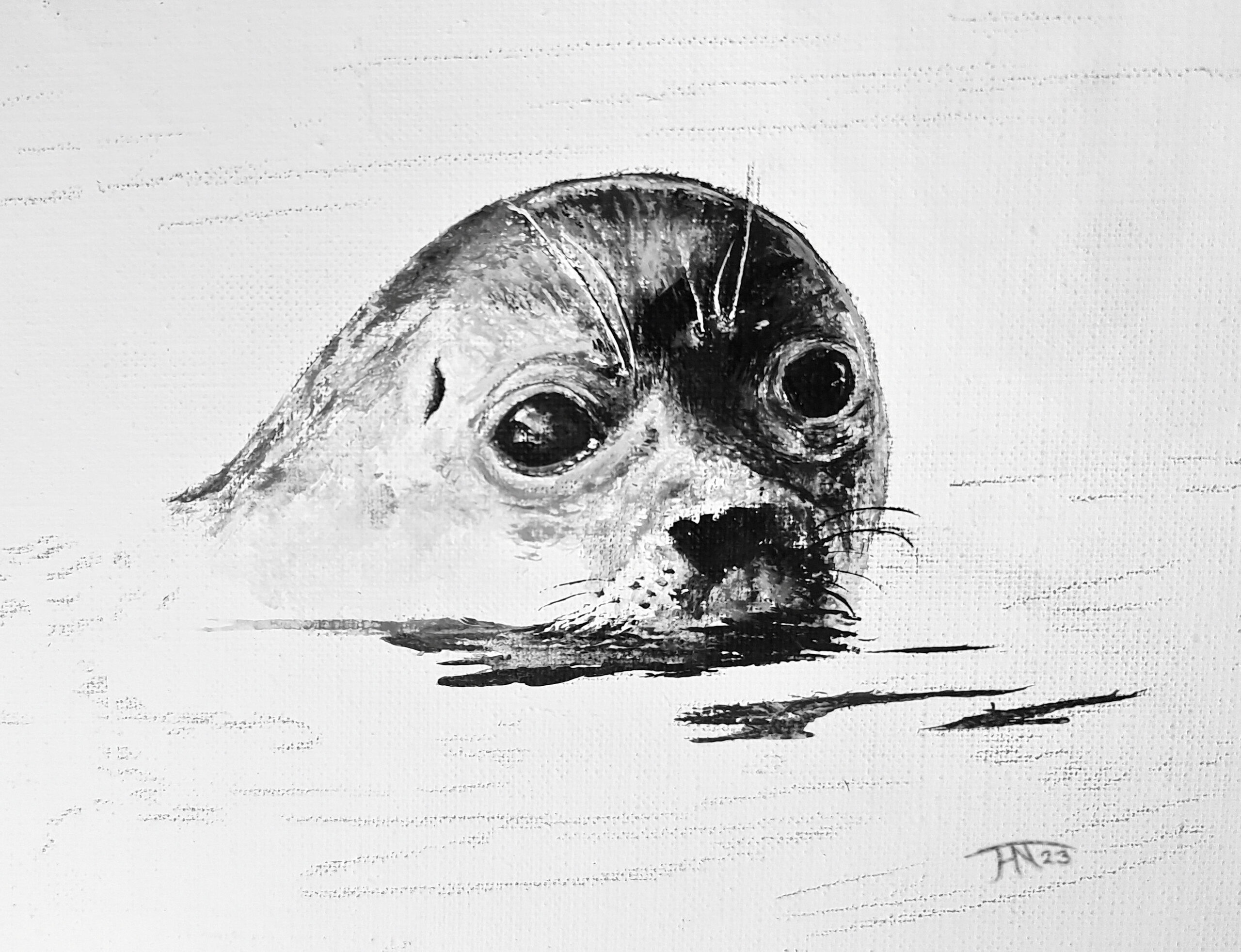 Ik vind een zeehondje altijd grappig, ook al kijken ze vaak wat droevig. Dit is een snel opgezet acryl schilderij op doek.