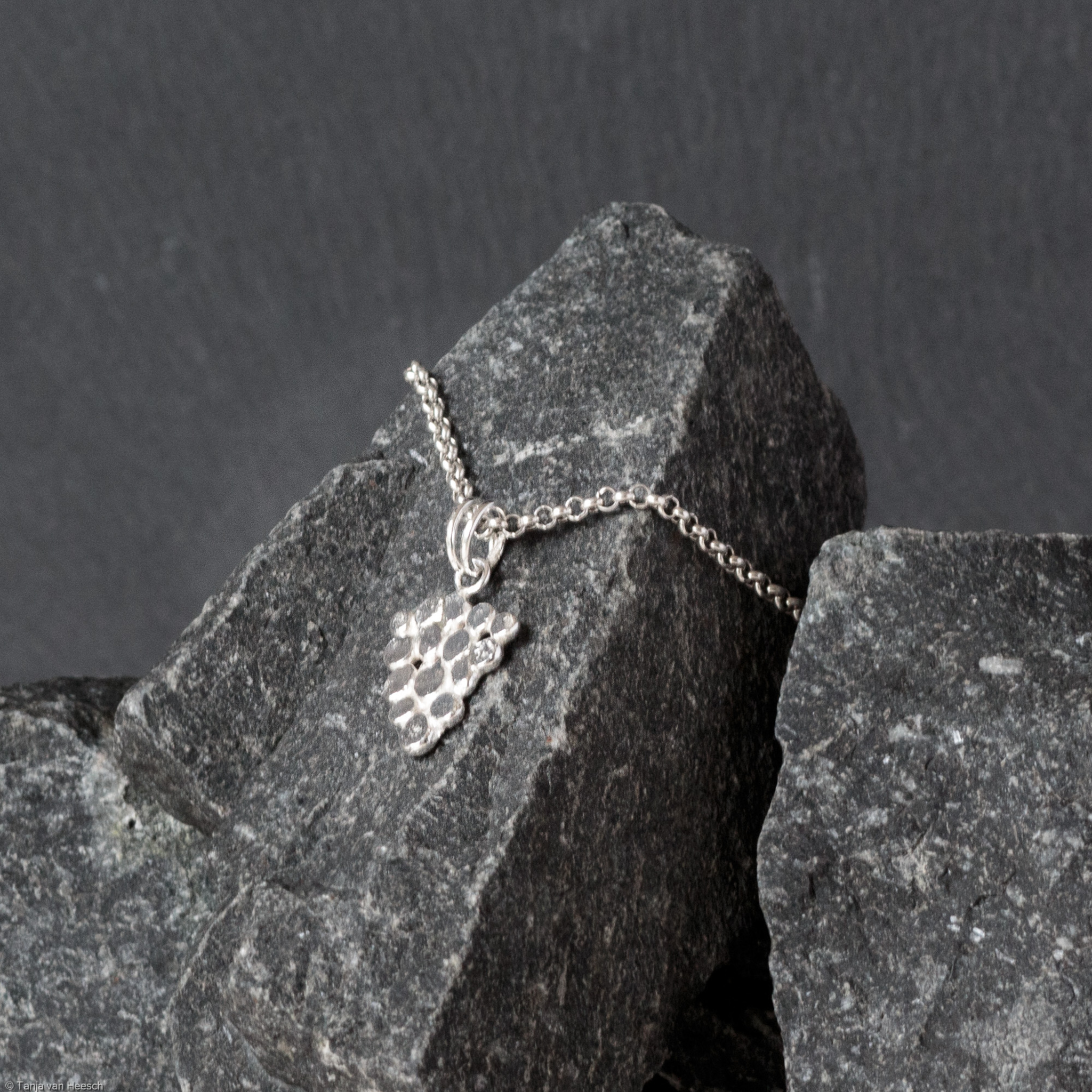 Hanger druiventros, gemakt van platgewalste bolletjes zilver. (Prijs is zonder koord/ketting)