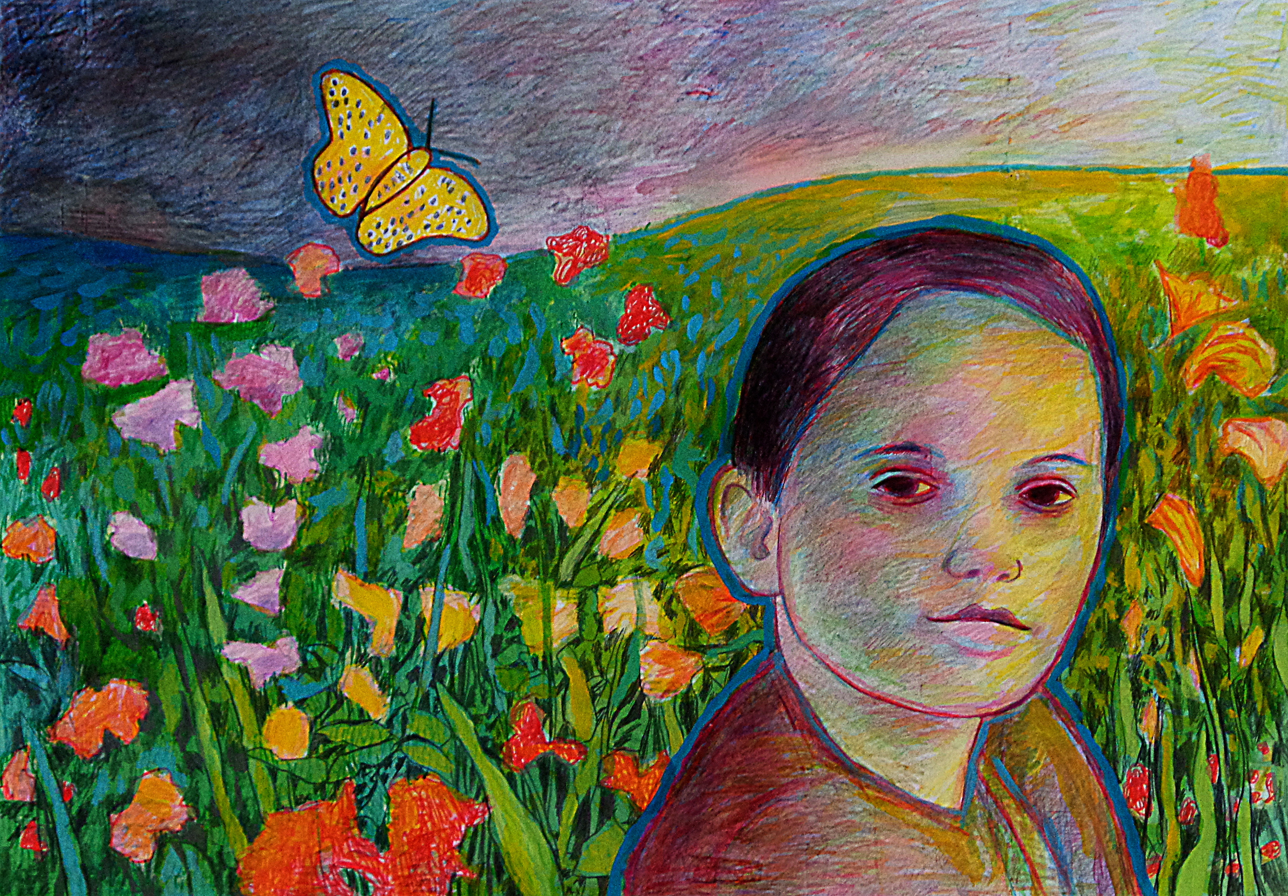 Vrij werk in kleurpotlood ballpoint acrylverf en stift
