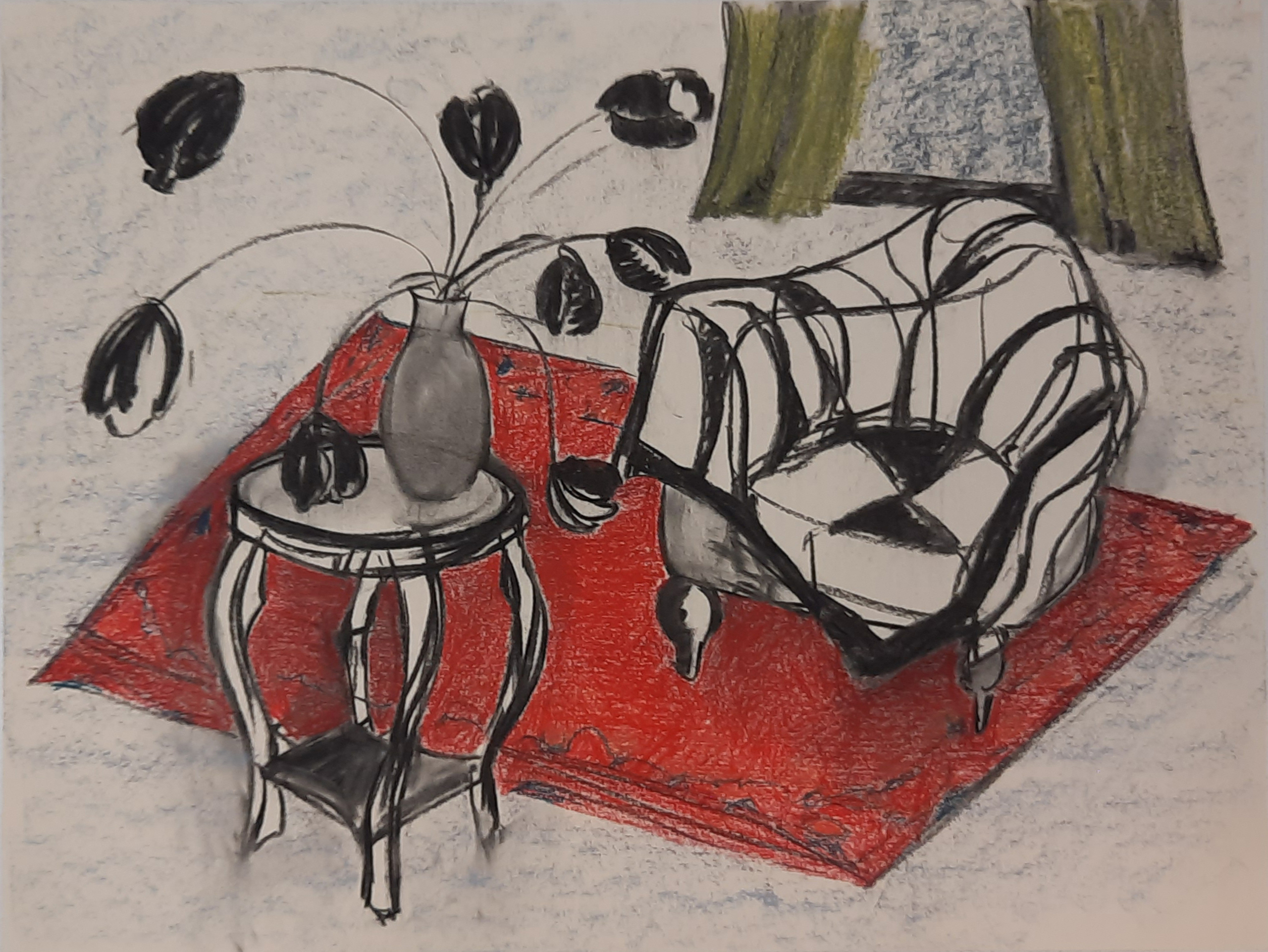 Bloemen Pastel Interieur Houtskooltekening