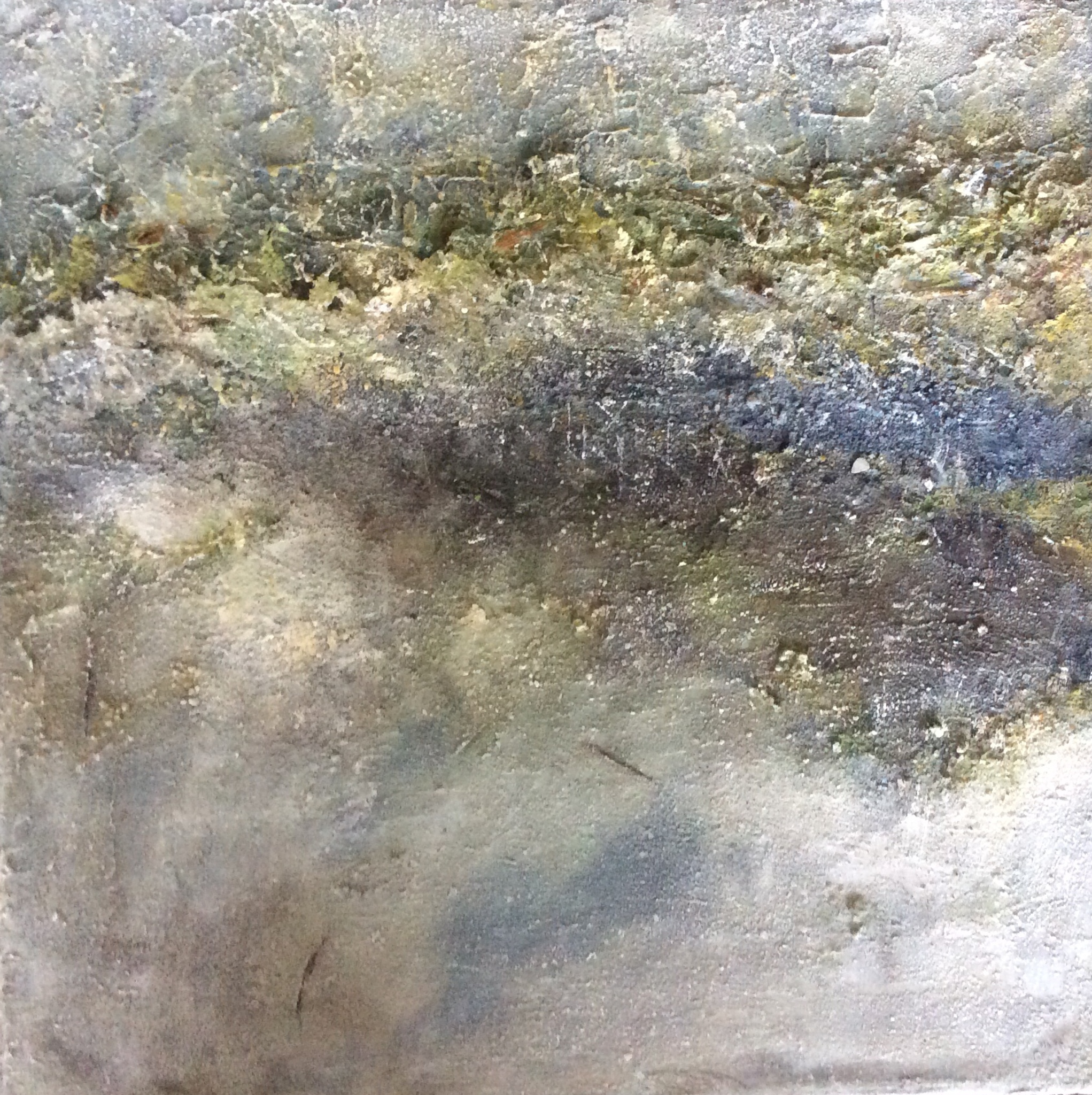 Bijzondere kleuren van het wad vastgelegd op doek met gebruik van zand en andere materialen.