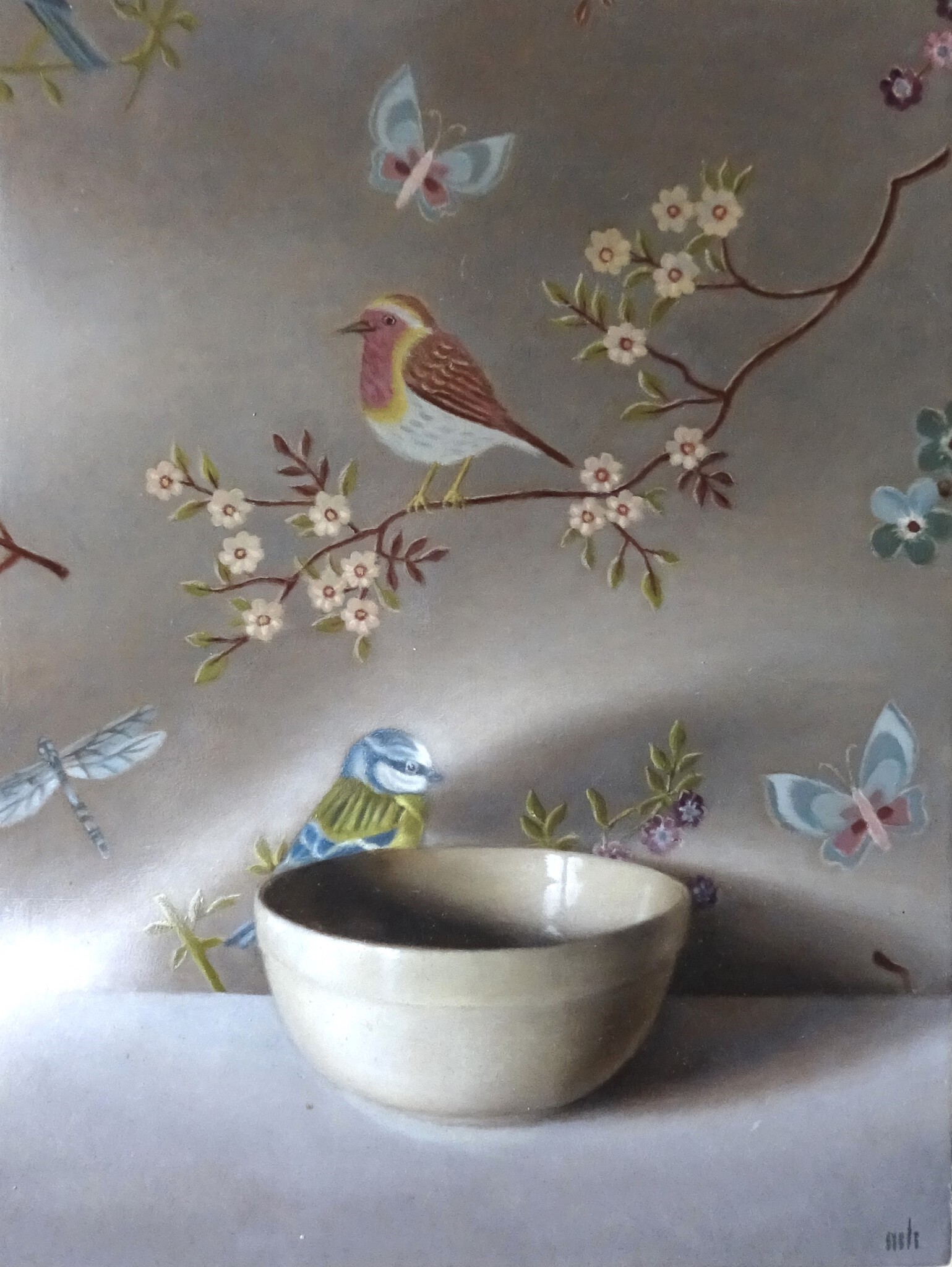 In de olieverf stillevens van Maureen zijn de voorwerpen zorgvuldig gerangschikt om zo harmonie en verstilling tot stand te brengen.