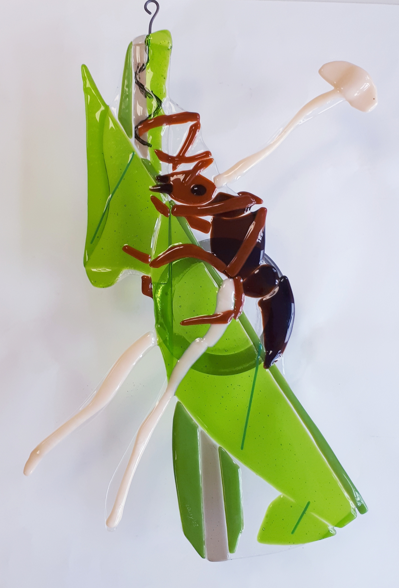 Door schimmel geinfecteerde mier om sporen te verspreiden. Glasfusing techniek met ophanghaak.