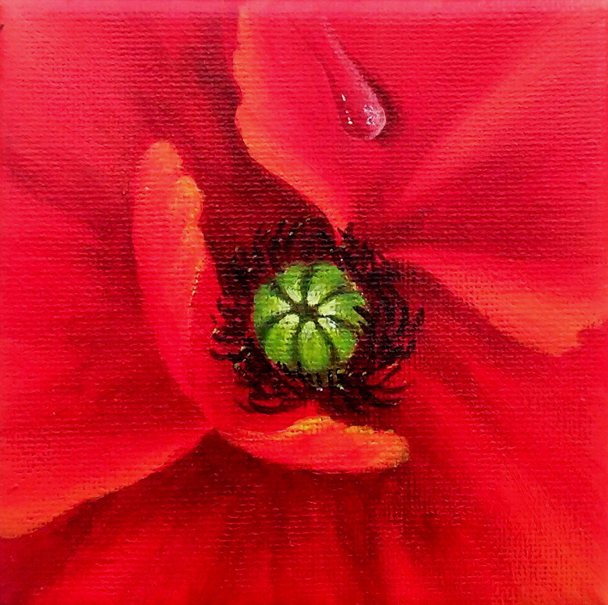 Acrylverf op doek , zonder lijst, maar de zijkanten zijn ook meegeschilderd en vormen een deel van de totale afbeelding. 10x10cm zonder lijst. Prijs is inclusief BTW maar exclusief verzendkosten, die zijn € 7,95 binnen Nederland.