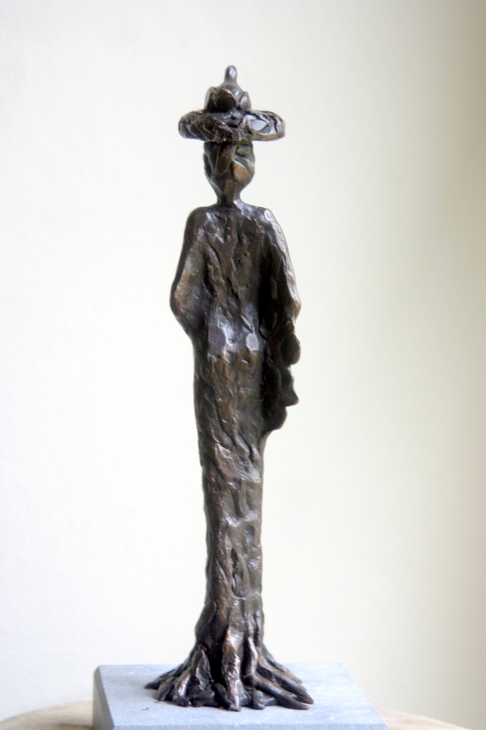 Boom vrouw en vogelnest, brons