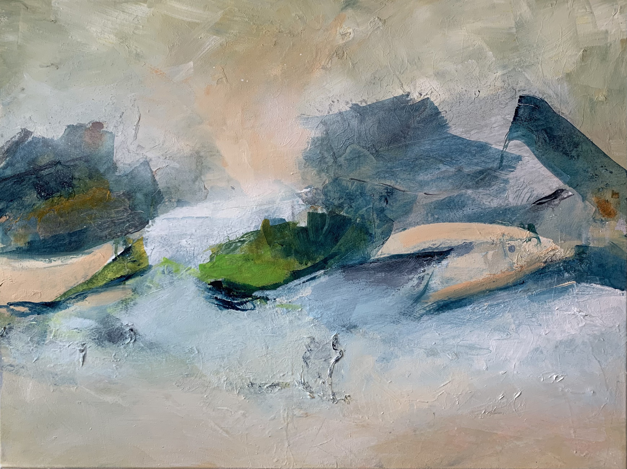 ANJA TEUNISSE Ik schilder beelden die ontstaan vanuit mijn binnenste. Onbewust is de natuur altijd mijn inspiratiebron, beelden van het hooggebergte zitten vaak voor op mijn netvlies.