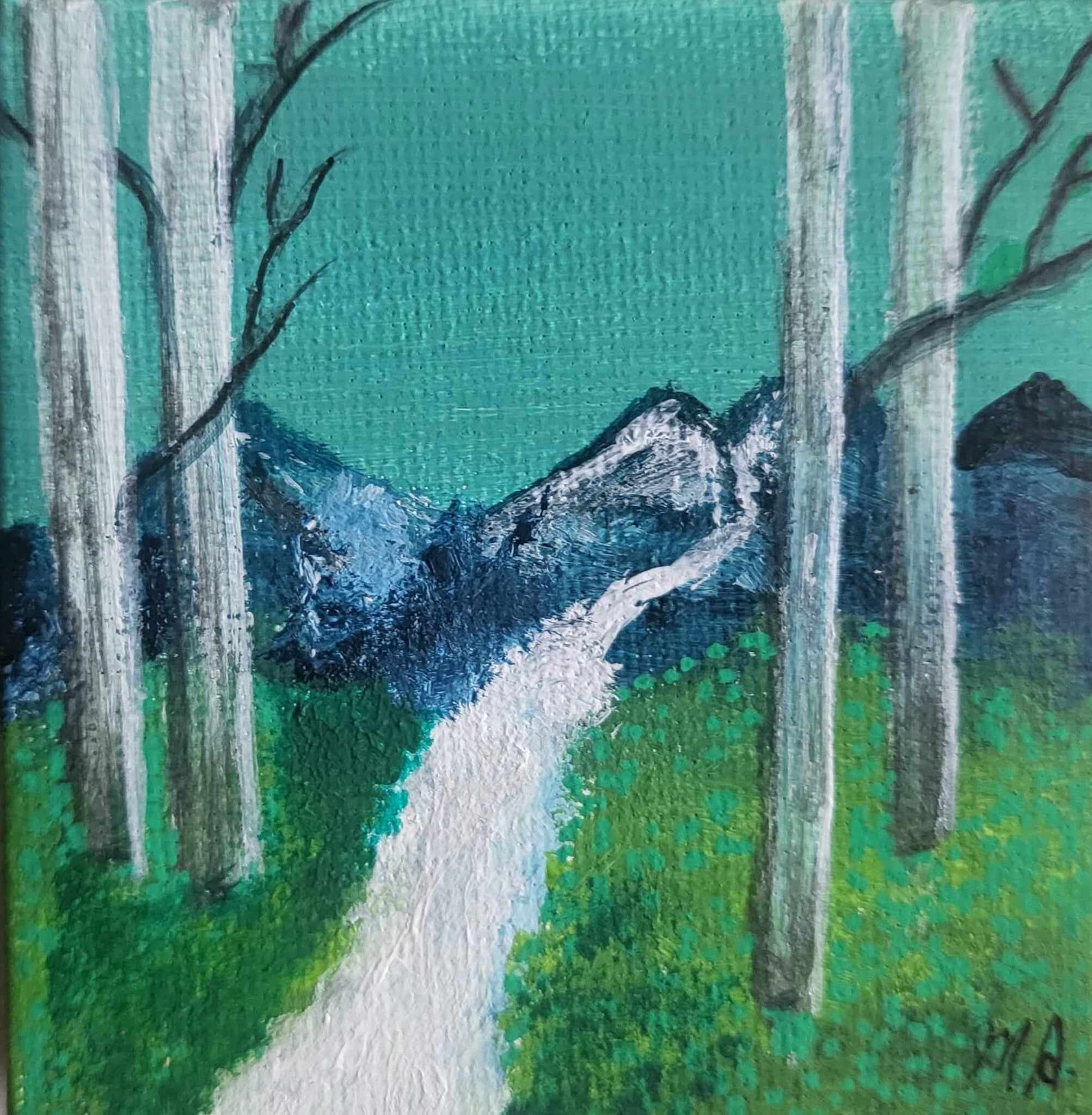 Naast gewone schilderijen hou ik ervan om mini's te maken. Je hebt dan de vrijheid van alles te proberen zonder dat het heel veel tijd kost. Ook geven ze mensen de kans om een stukje kunst te kopen zonder dat het heel veel ruimte in beslag neemt of veel kost.. DE prijs is inclusief de verzending.