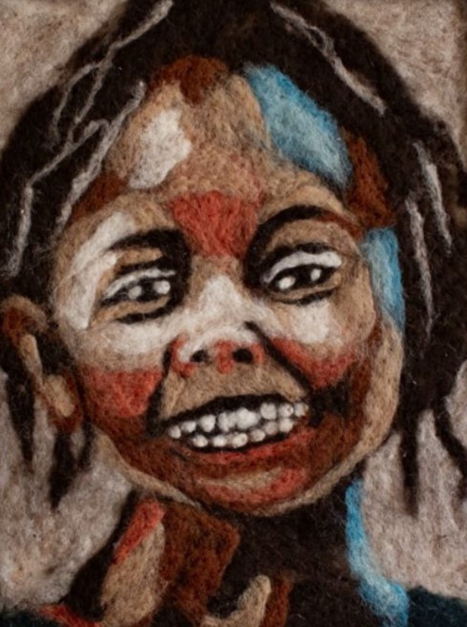 Als kind ben ik opgegroeid in Afrika ( Burkina faso) en ik vind dat een positief beeld van Afrika schetsen ook belangrijk is.Aan de portretten gaat eerst een pastelkrijttekening aan vooraf. Het kleurgebruik is voor mij het belangrijkst. Naaldvilten is net als schilderen. Je werkt laag voor...
